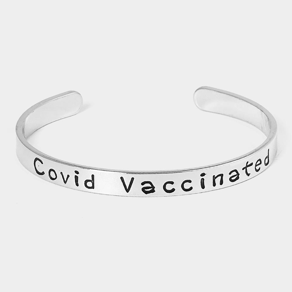 Covid Vaccinated White Gold Dipped Message Bracelet
