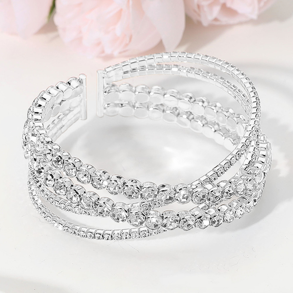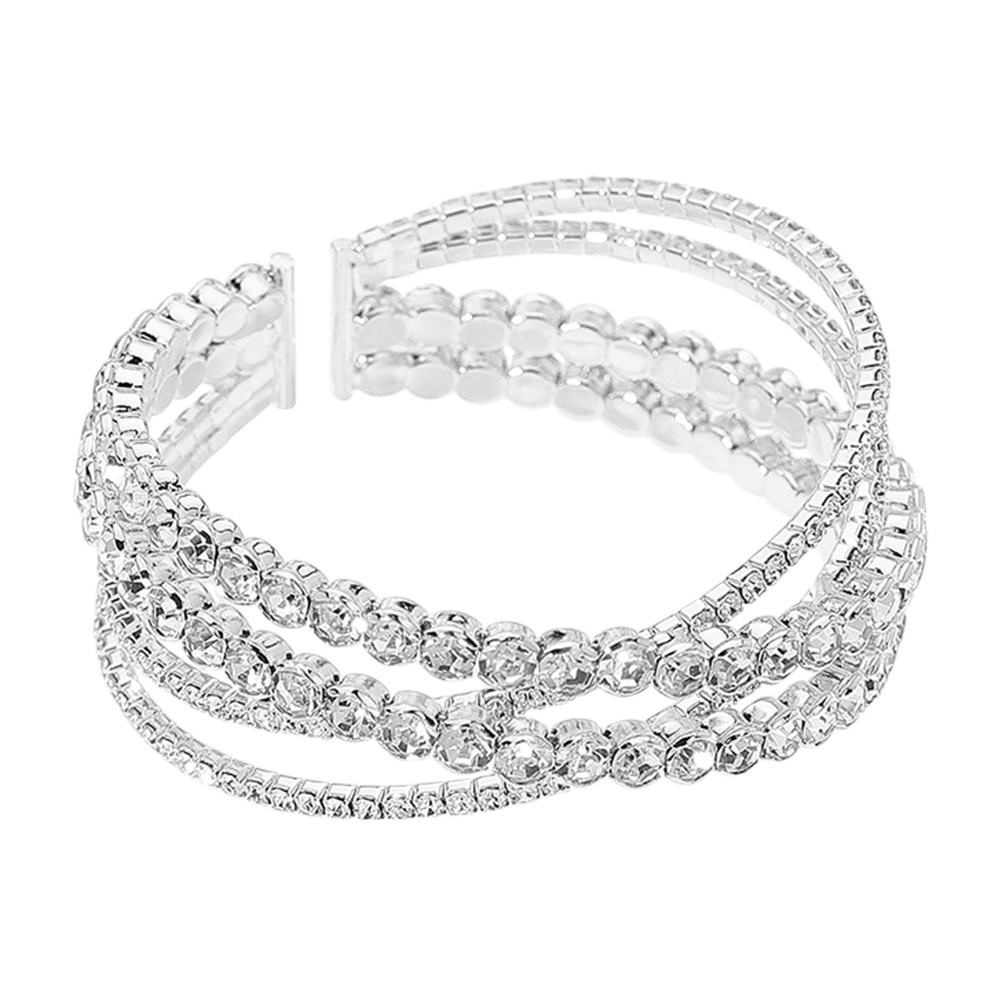 • Stylish cuff bracelet with layered rhinestone accents, designed to enhance formal and evening wear. A perfect accessory for weddings, galas, or any special occasion where you want to shine with refined elegance.