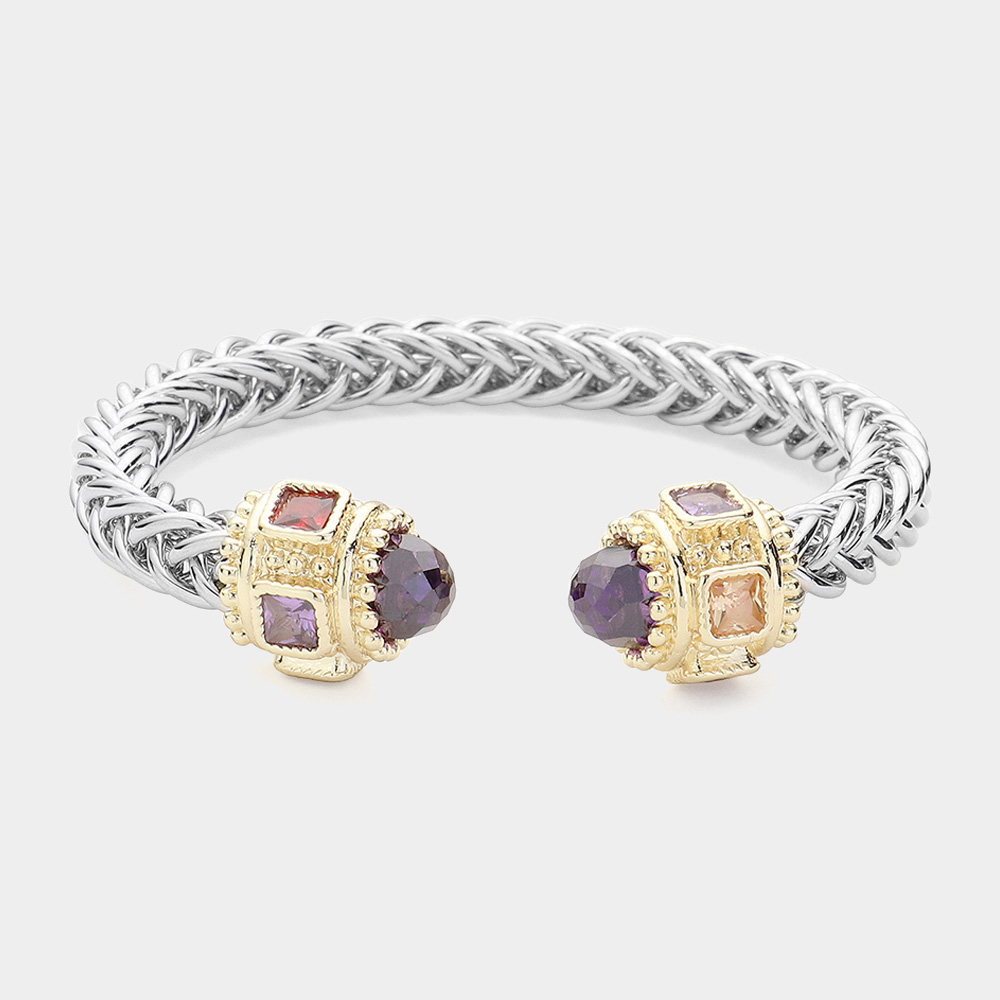 CZ Stone Tip Textured Metal Cuff Bracelet
