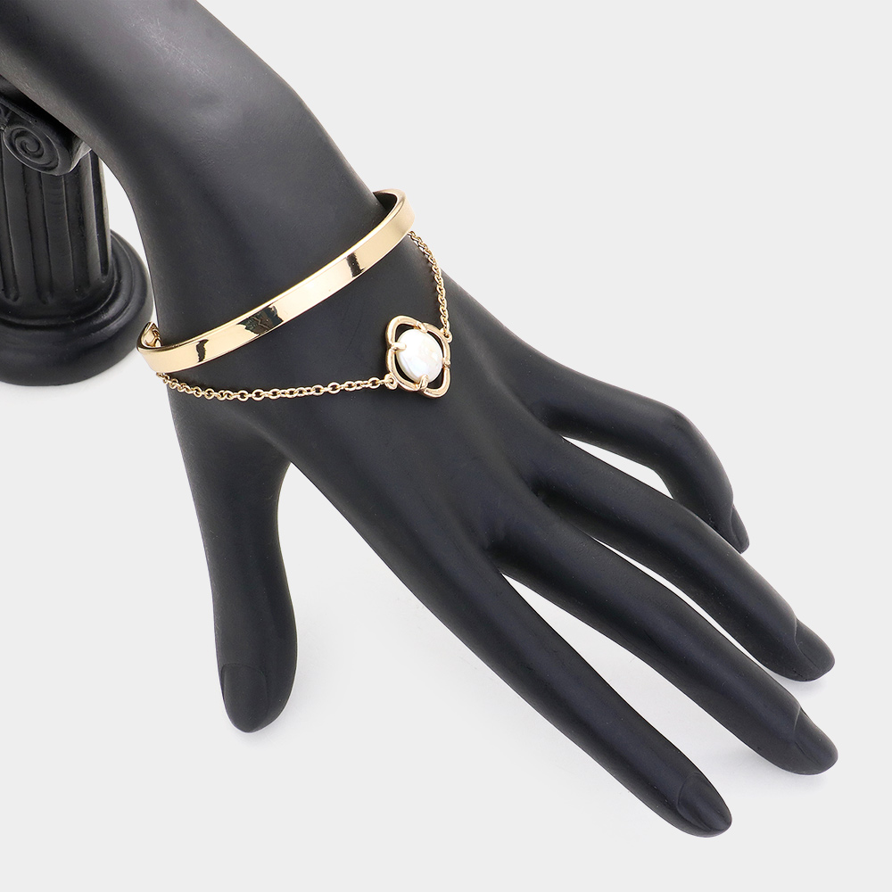 Double Layered Pearl Charm Drop Cuff Bracelet