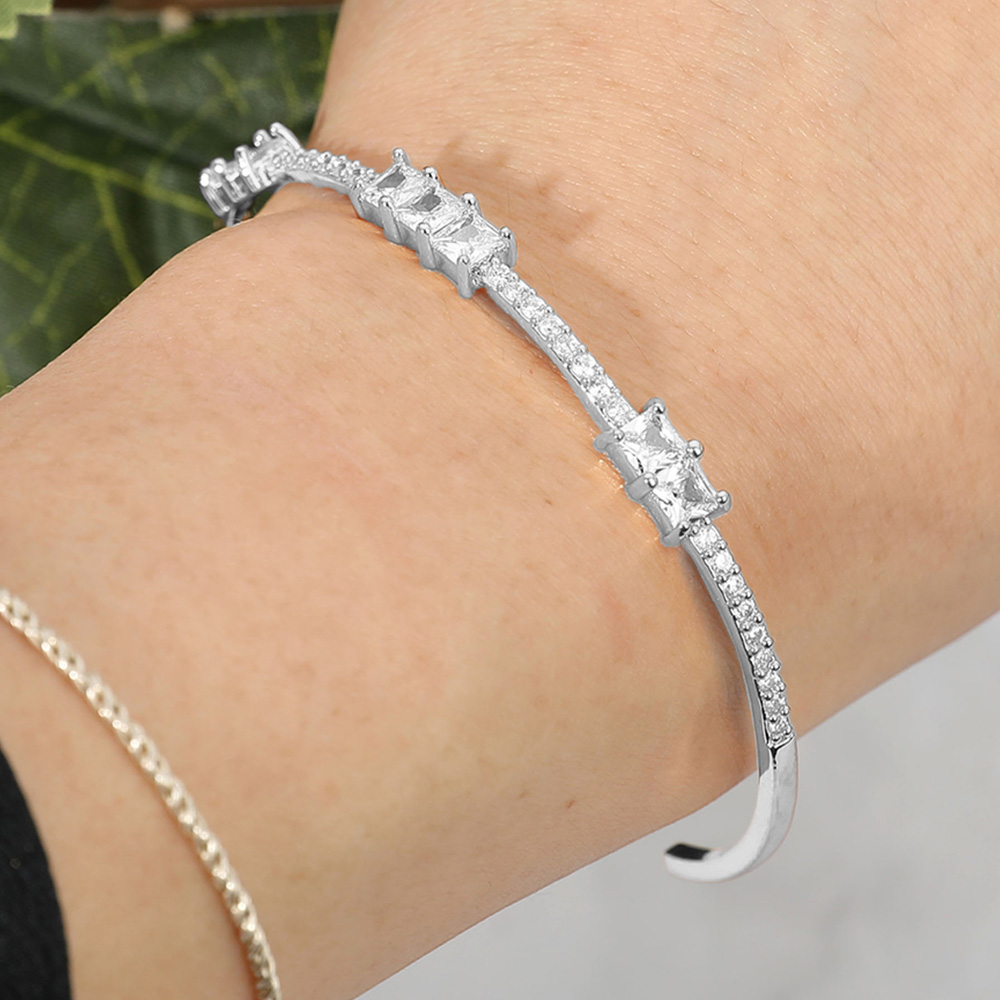 Double Square CZ Stone Cluster Station Pointed Evening Cuff Bracelet