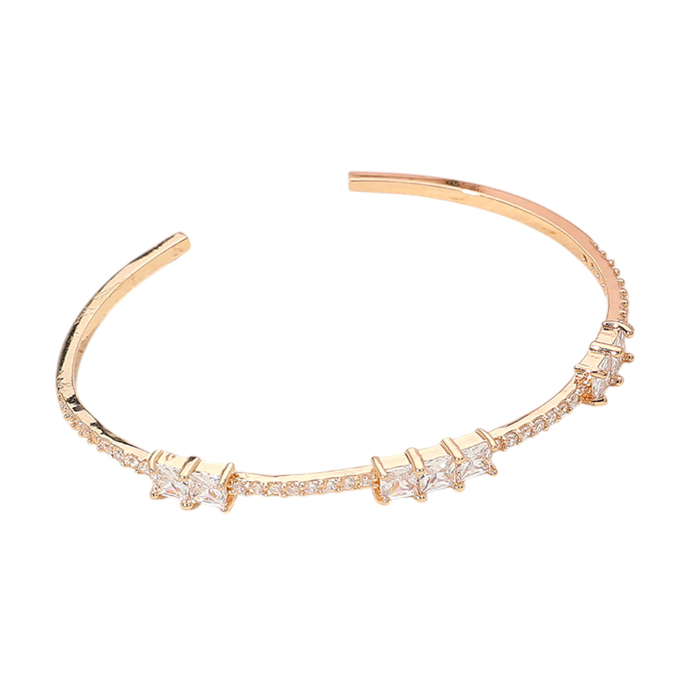 Details • Size : 0.2" H, 2.6" D • Cuff • A sleek cuff bracelet adorned with sparkling cubic zirconia, including striking baguette accents. Perfect for layering or wearing solo, this elegant piece adds a touch of refined glamour to any outfit, from day to night. • Lead and Nickel Compliant • CZ Cubic Zirconia