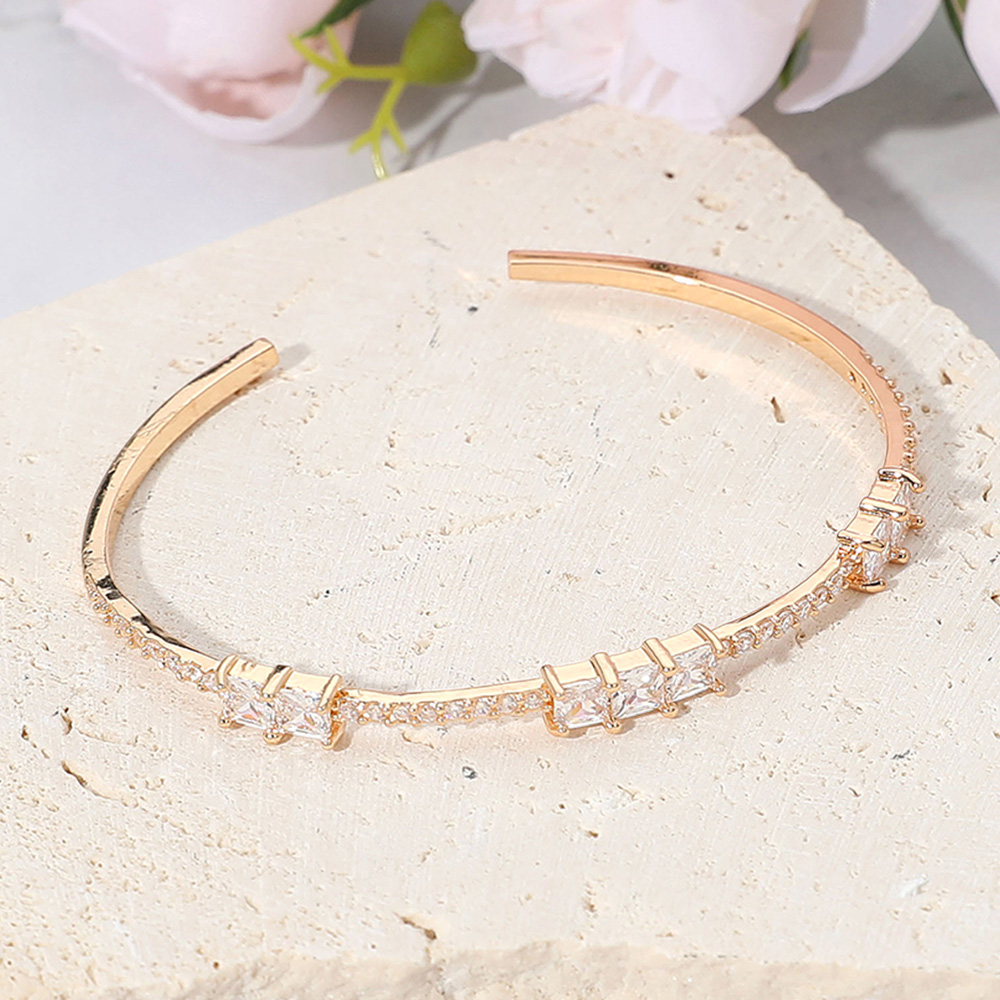 Double Square CZ Stone Cluster Station Pointed Evening Cuff Bracelet