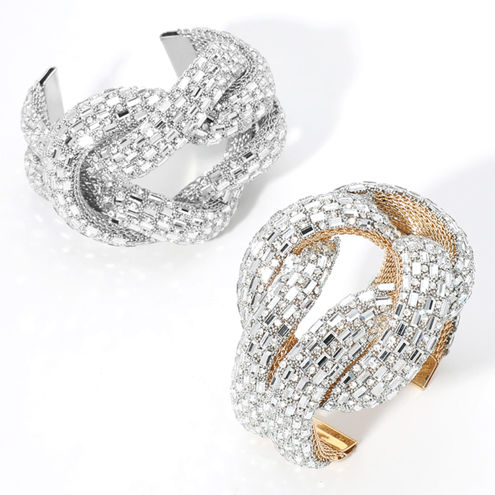 Emerald Cut Stone Embellished Knot Cuff Bracelet