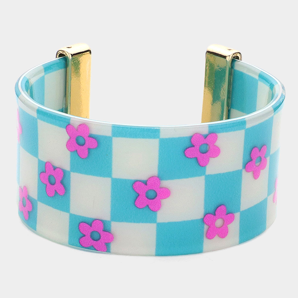 Flower Patterned Striped Resin Cuff Bracelet