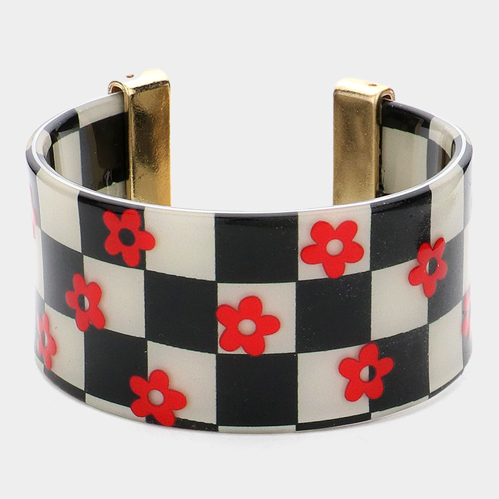 Celluloid Acetate Bold Geometric Flower Bud Beaded Statement Necklace