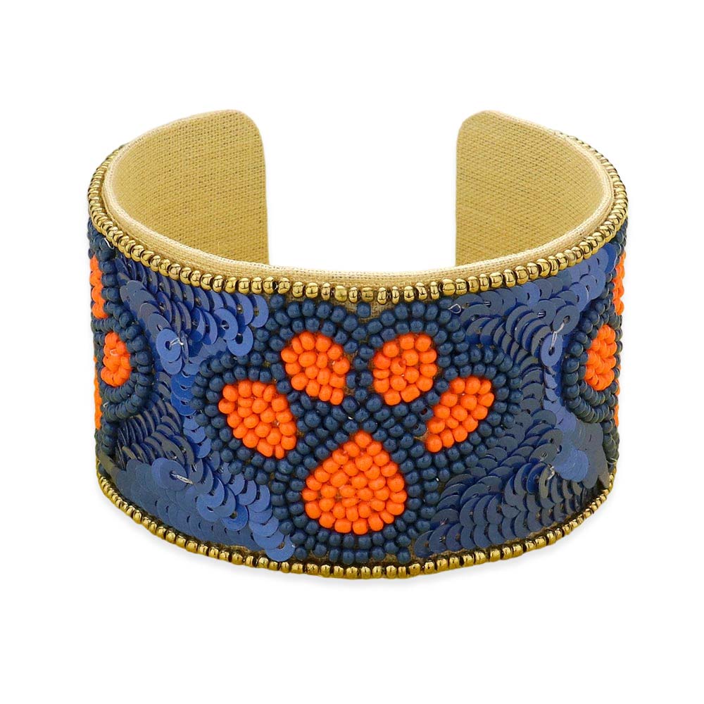 Game Day Sequin Seed Beaded Paw Accented Cuff Bracelet