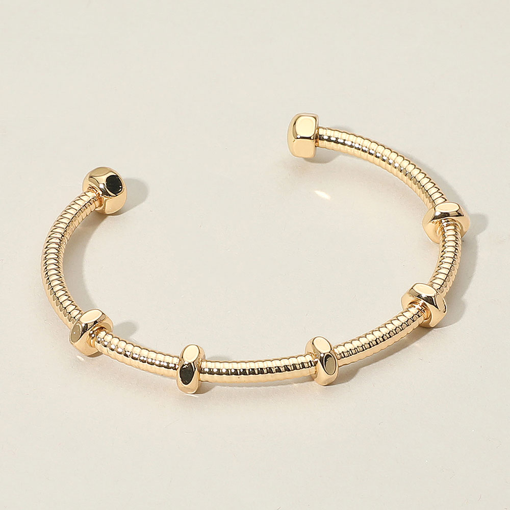 Details • Size : 0.3" H, 2.3"D • Cuff • Stylish open cuff bracelet featuring a sleek textured tube design with polished accents. Easy to slip on and off, this chic piece adds a refined touch to your everyday or evening accessory lineup. • Lead and Nickel Compliant