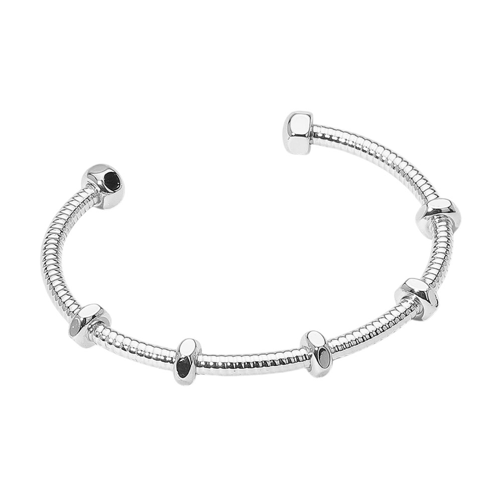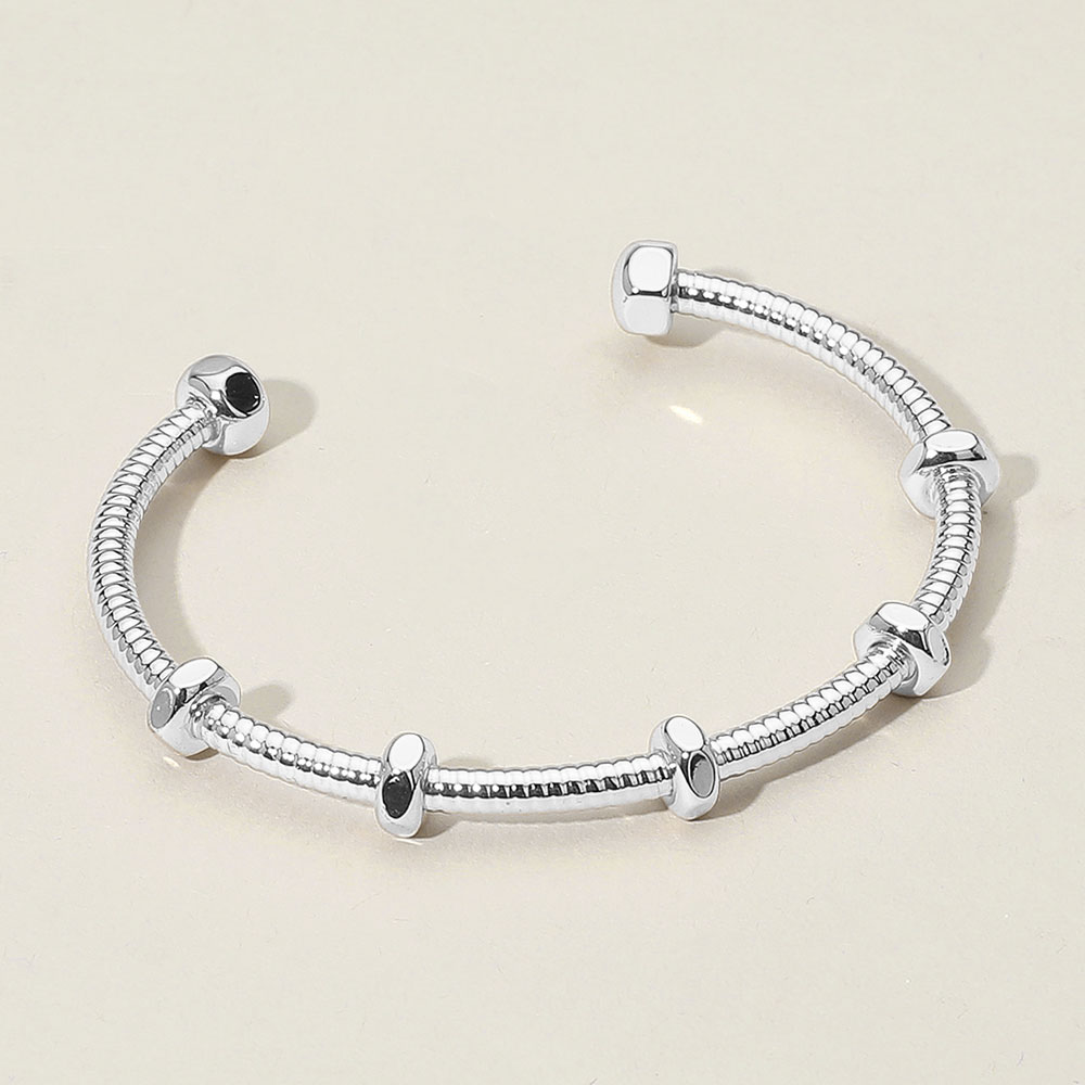• Stylish open cuff bracelet featuring a sleek textured tube design with polished accents. Easy to slip on and off, this chic piece adds a refined touch to your everyday or evening accessory lineup.