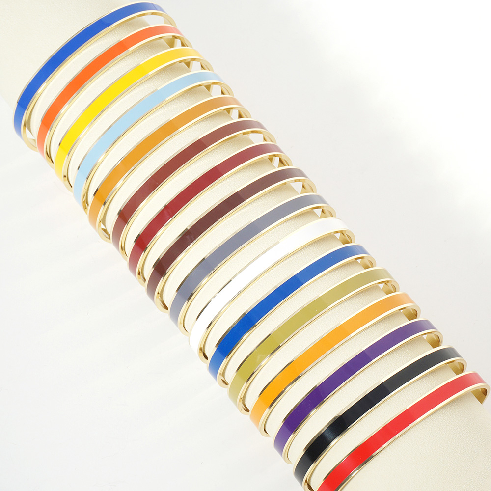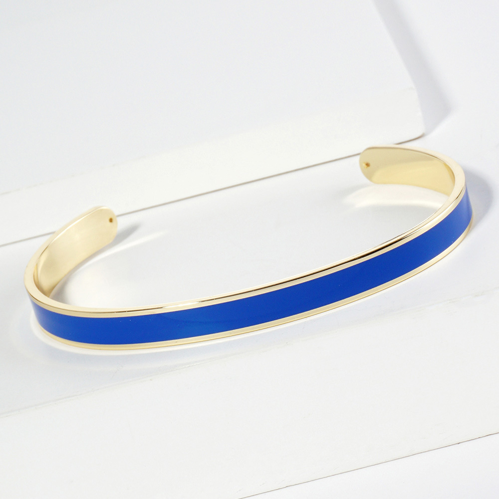 Details • Size : 0.25" H • Cuff • Keep it chic and minimal with a slim enamel cuff bracelet featuring a sleek metallic frame. Lightweight and versatile, this elegant piece adds a refined pop of style, perfect for stacking with other bangles or wearing solo for a polished everyday look. • Lead and Nickel Compliant • Made In Korea • Gold Dipped