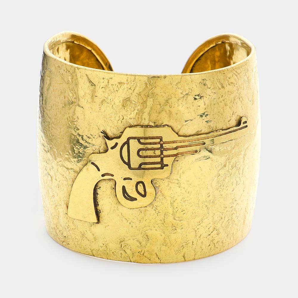 Hammered Wide Metal Gun Cuff Bracelet