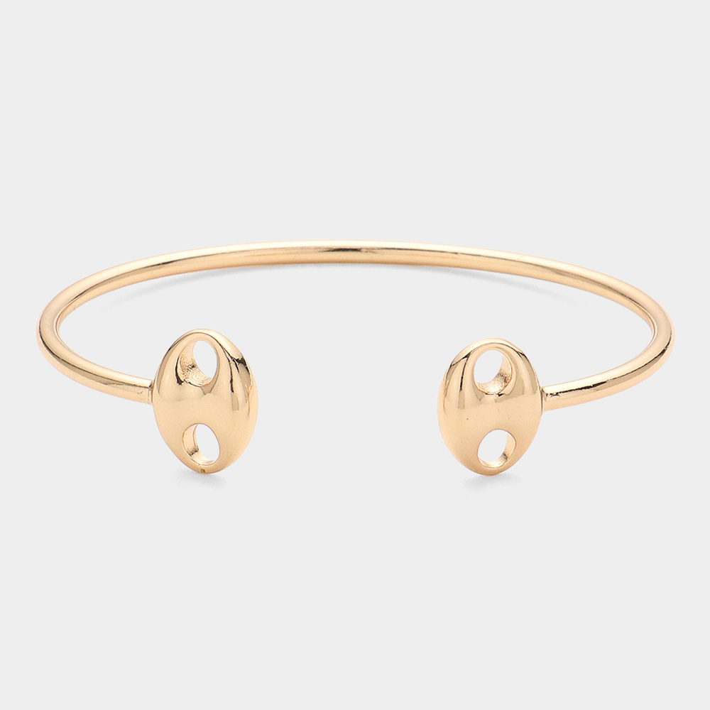 Details • Size : 0.7" H • Cuff • Sleek and contemporary, this open cuff bracelet features two oval-shaped accents at each end for a minimalist yet eye-catching finish. A versatile piece that complements both everyday outfits and dressier ensembles with ease. • Lead and Nickel Compliant
