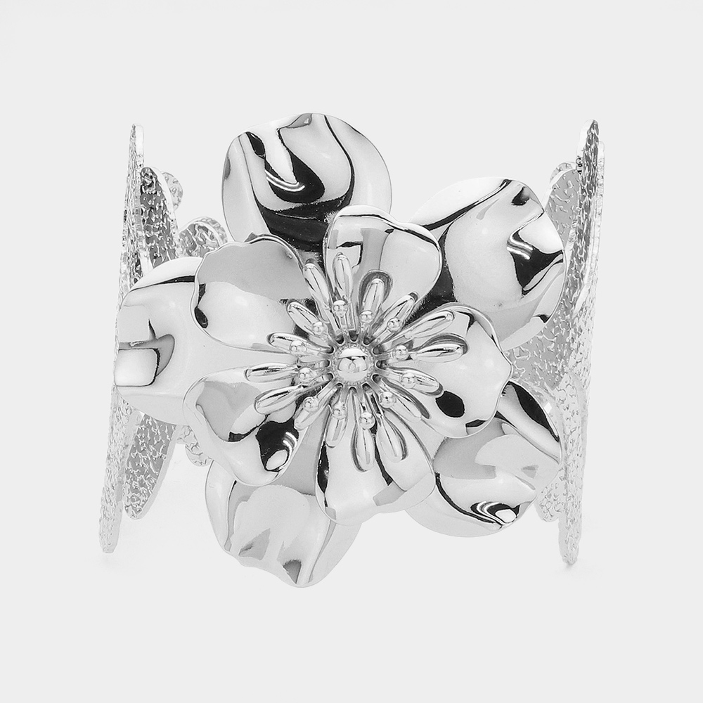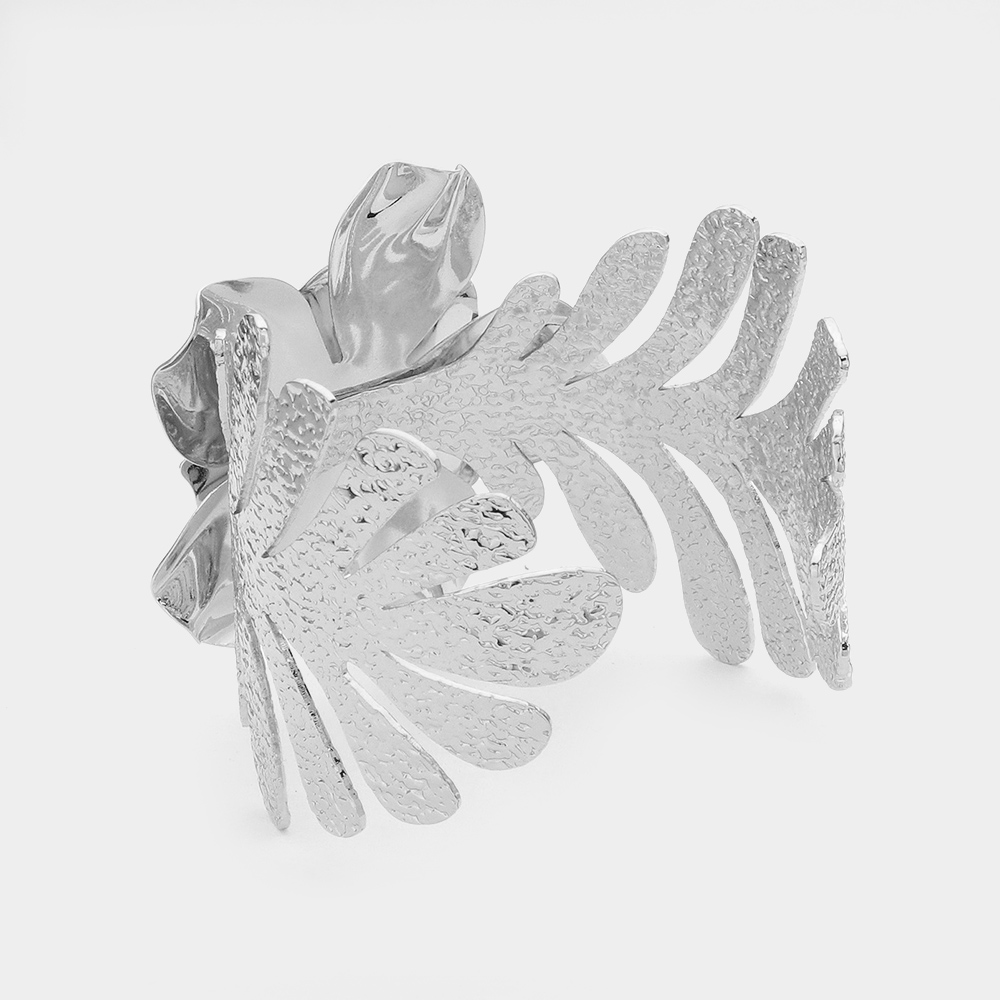 Metal Flower Tropical Leaf Cuff Bracelet