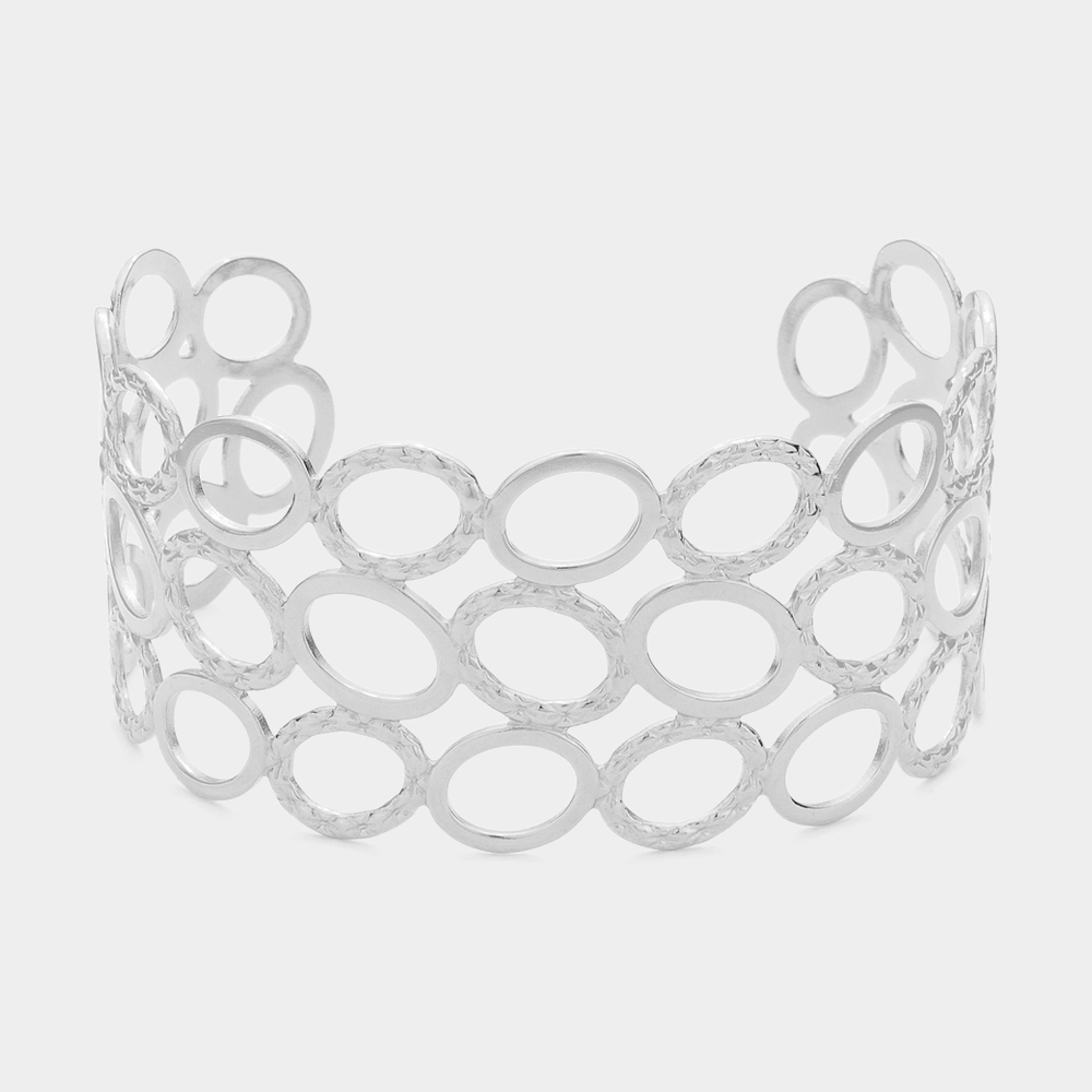 CZ Stone Paved Cross Accent Two Tone Cuff Bracelet