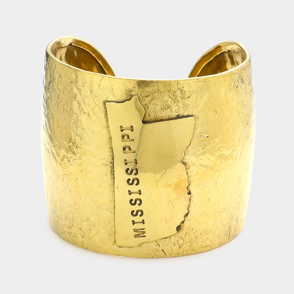 Mississippi State Map Hammered Wide Metal Cuff Bracelet