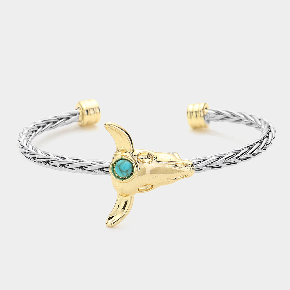 Natural Stone Pointed Bull Head Cuff Bracelet