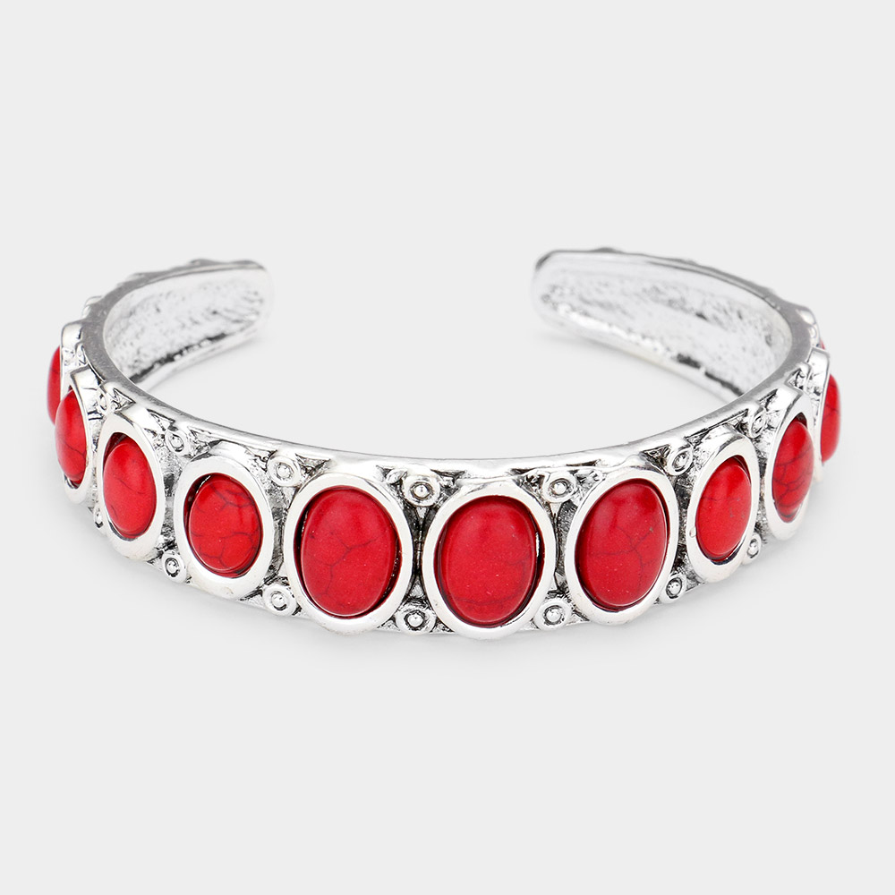 Oval Natural Stone Antique Metal Cuff Bracelet