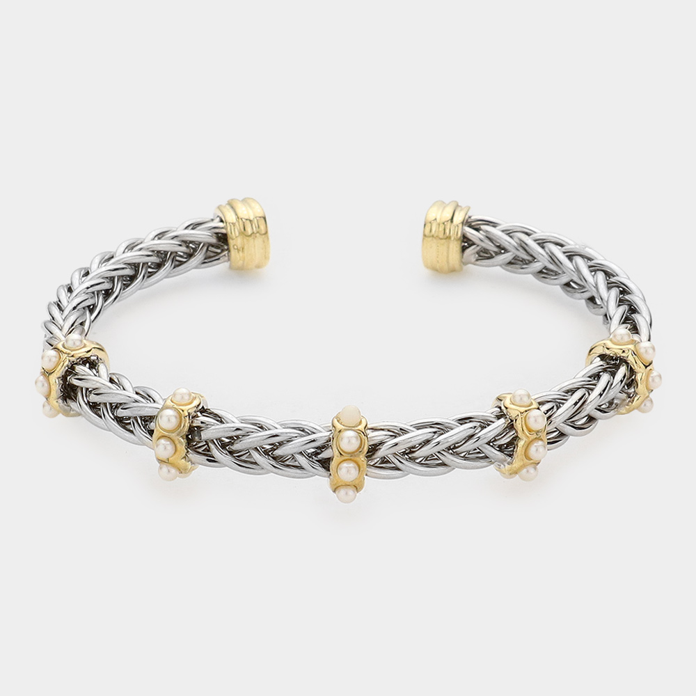 14K Gold Plated CZ Stone Embellished Two Tone Crossover Metal Half Hoop Earrings