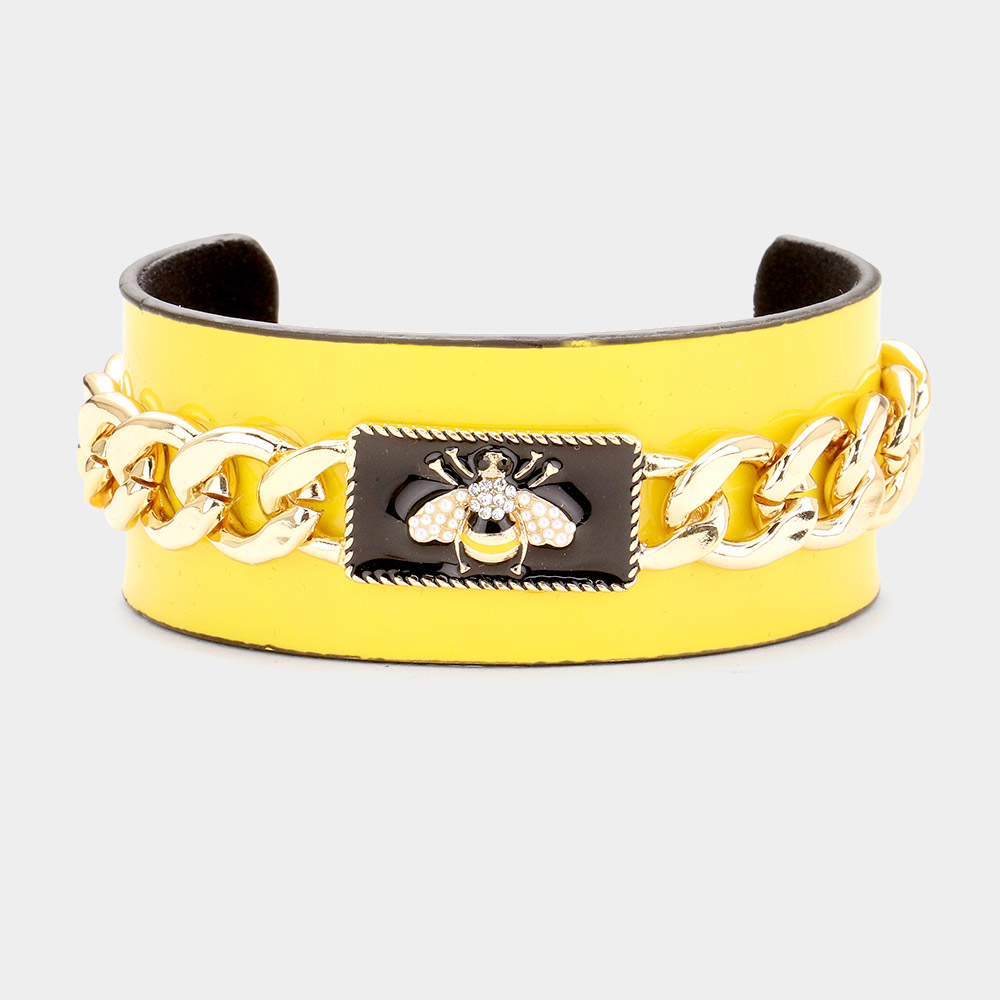 Pearl Honey Bee Metal Chain Accented Cuff Bracelet