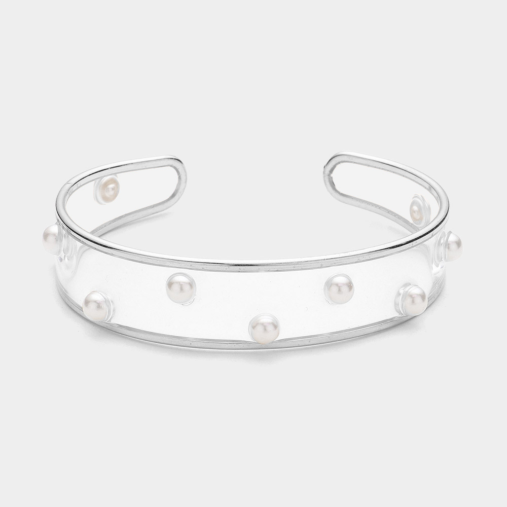 Pearl Pointed Transparent Cuff Bracelet