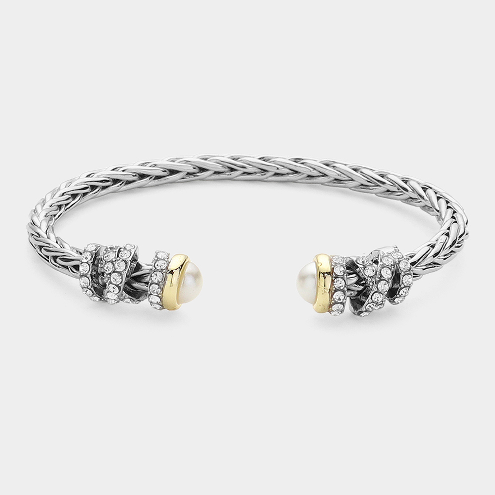3PCS - Pearl Metal Ball Beaded Stretch Multi Layered Bracelets