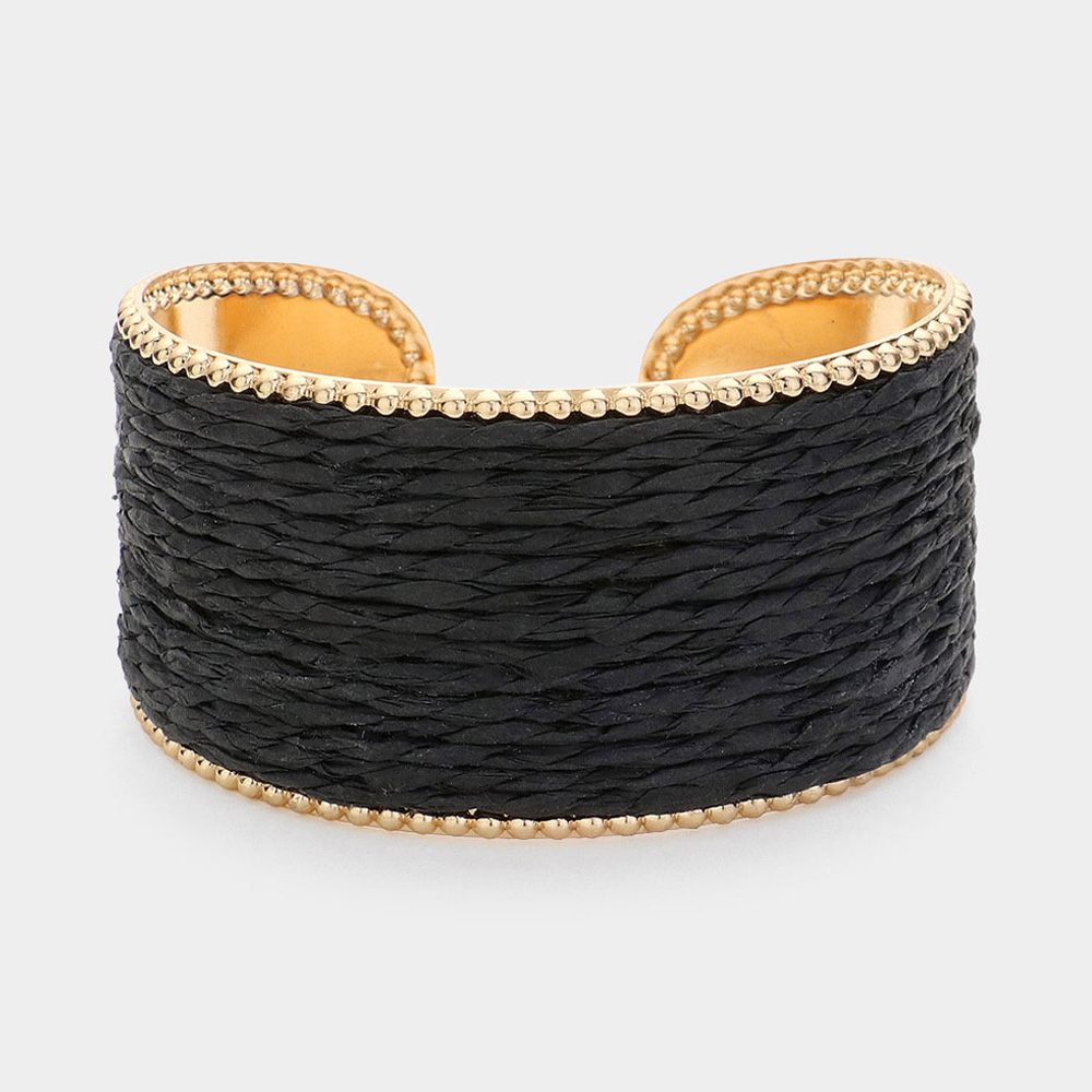Raffia Wrapped Ball Pointed Metal Hoop Earrings