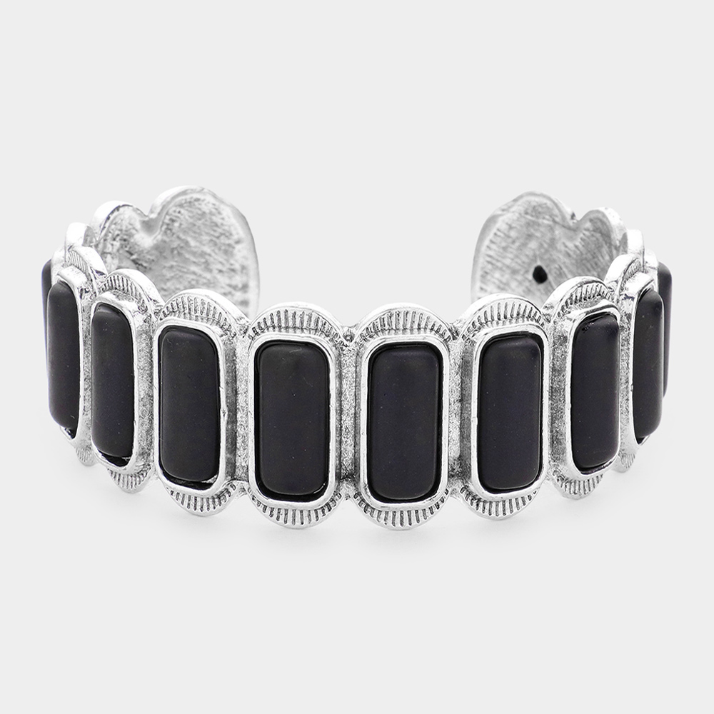 Rectangle Natural Stone Antique Metal Cuff Bracelet