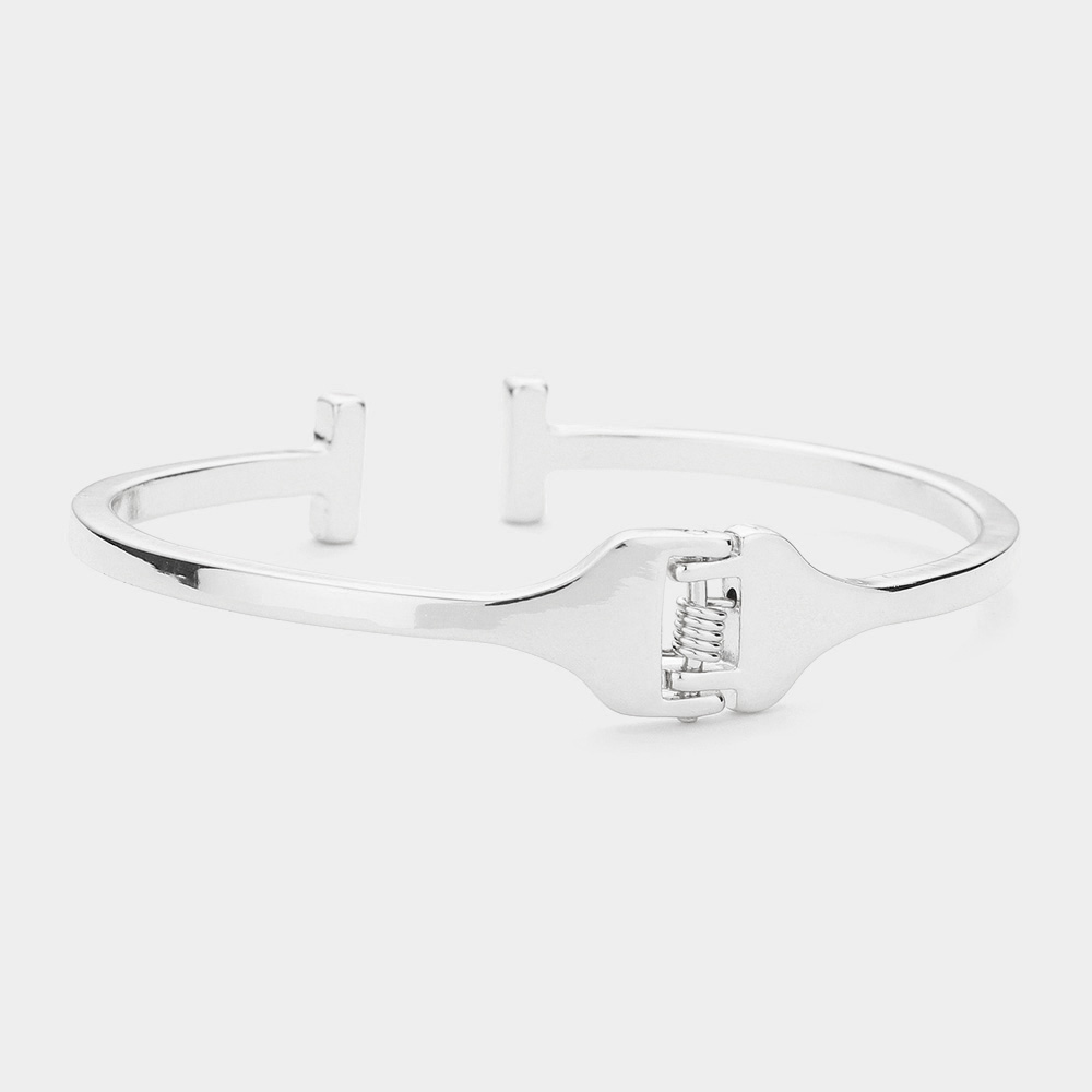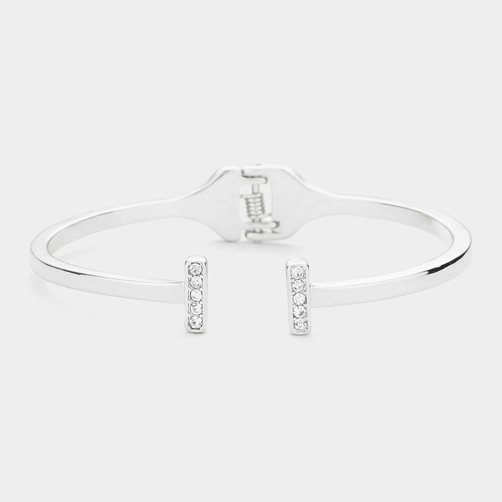 Rhinestone Embellished Metal Rectangle Tip Hinged Cuff Bracelet