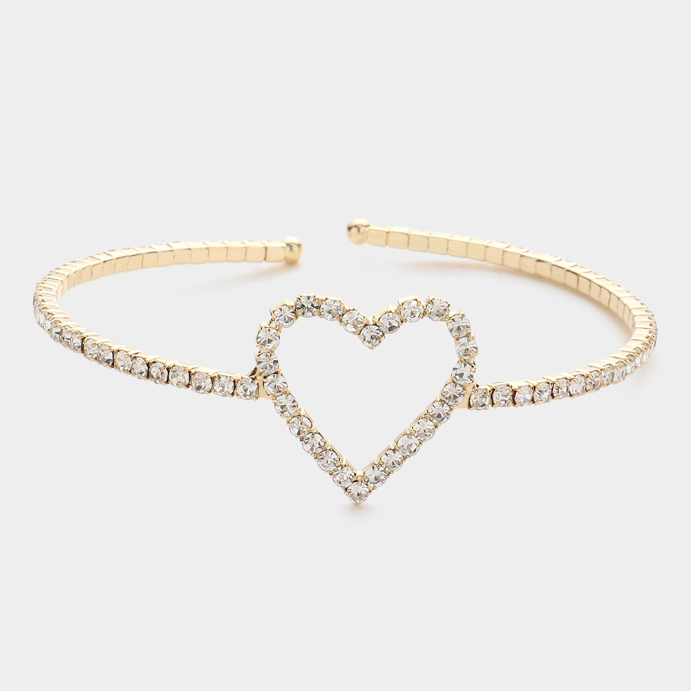 Rhinestone Open Heart Cuff Bracelet