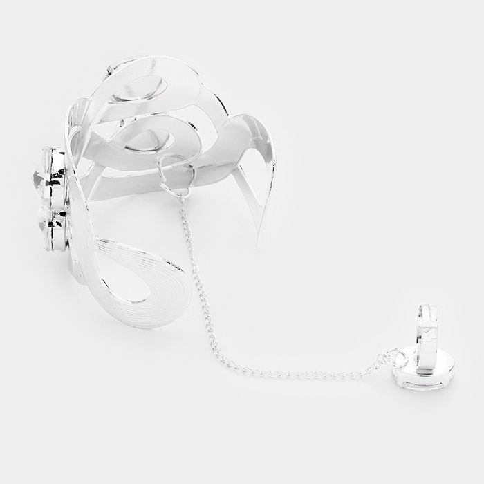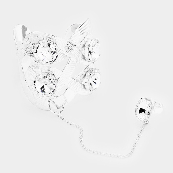 Round Crystal Braided Metal Hand Chain Cuff Bracelet