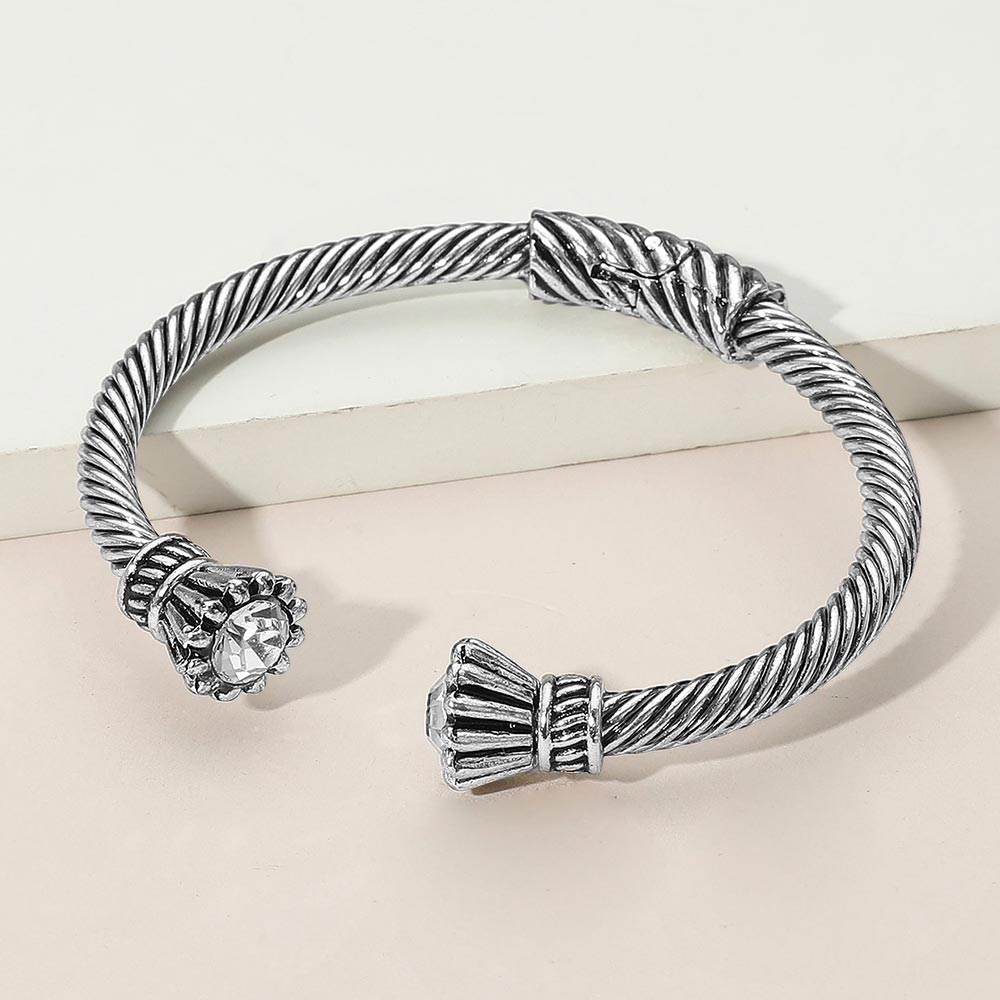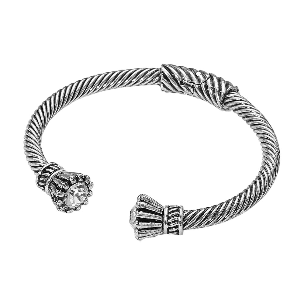 Round Stone Tip Antique Metal Hinged Cuff Bracelet