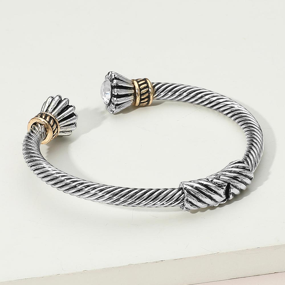 Round Stone Tip Antique Metal Hinged Cuff Bracelet