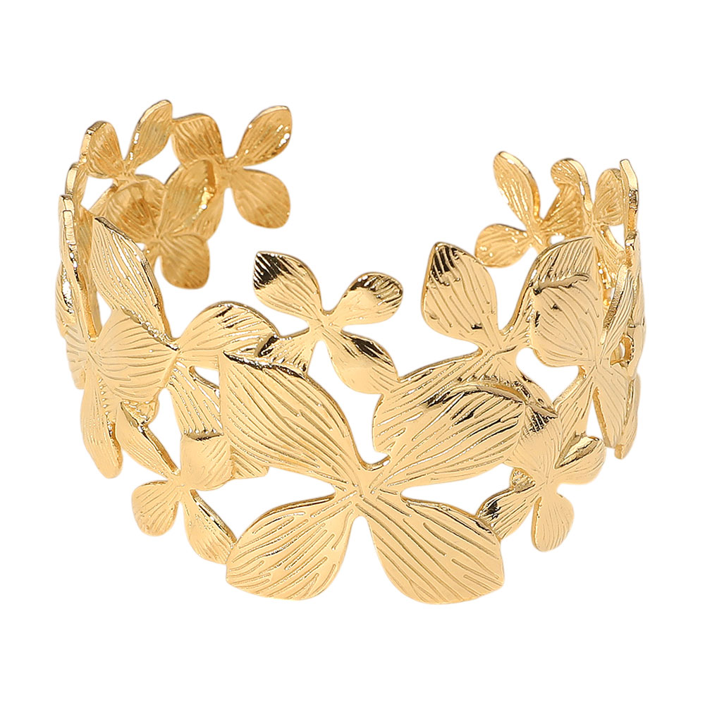 • Embrace natural elegance with this floral openwork cuff bracelet. Featuring intricately layered petal designs, it's a stylish statement piece perfect for any occasion.