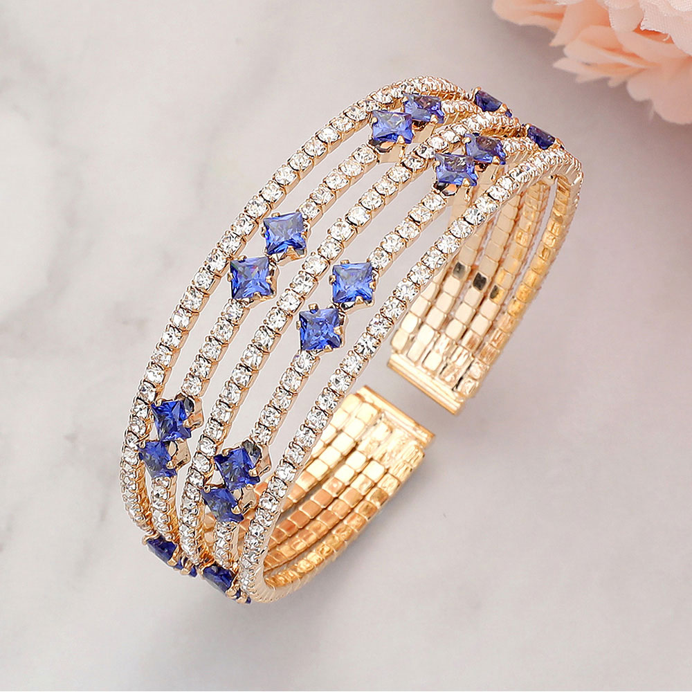 Square Cut CZ Stone Accented Evening Bracelet Square Cut CZ Stone Accented Evening Bracelet