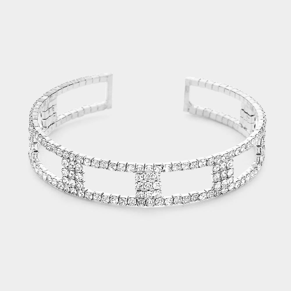 Wide Crystal Rhinestone Pave Leaf Bridal Hand Chain Evening Bracelet