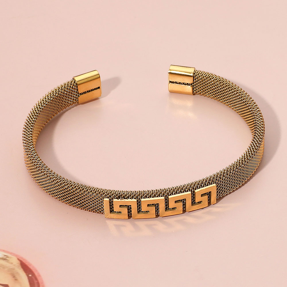 Stainless Steel Greek Key Pattern Accent Mesh Cuff Bracelet Stainless Steel Greek Key Pattern Accent Mesh Cuff Bracelet Stainless Steel Greek Key Pattern Accent Mesh Cuff Bracelet