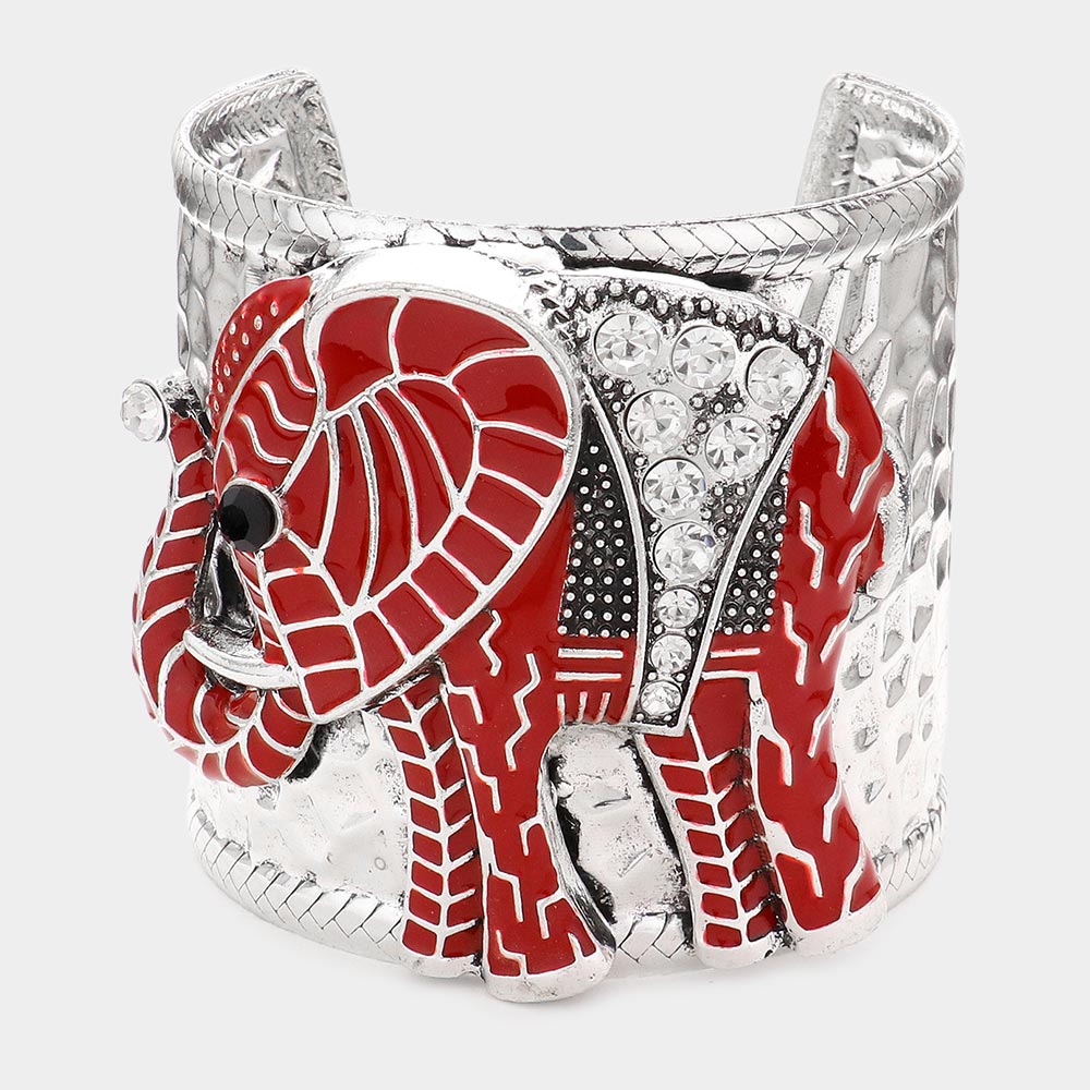 Stone Embellished Elephant Cuff Bracelet
