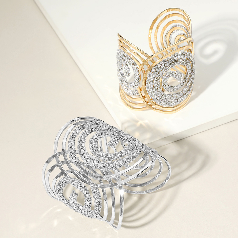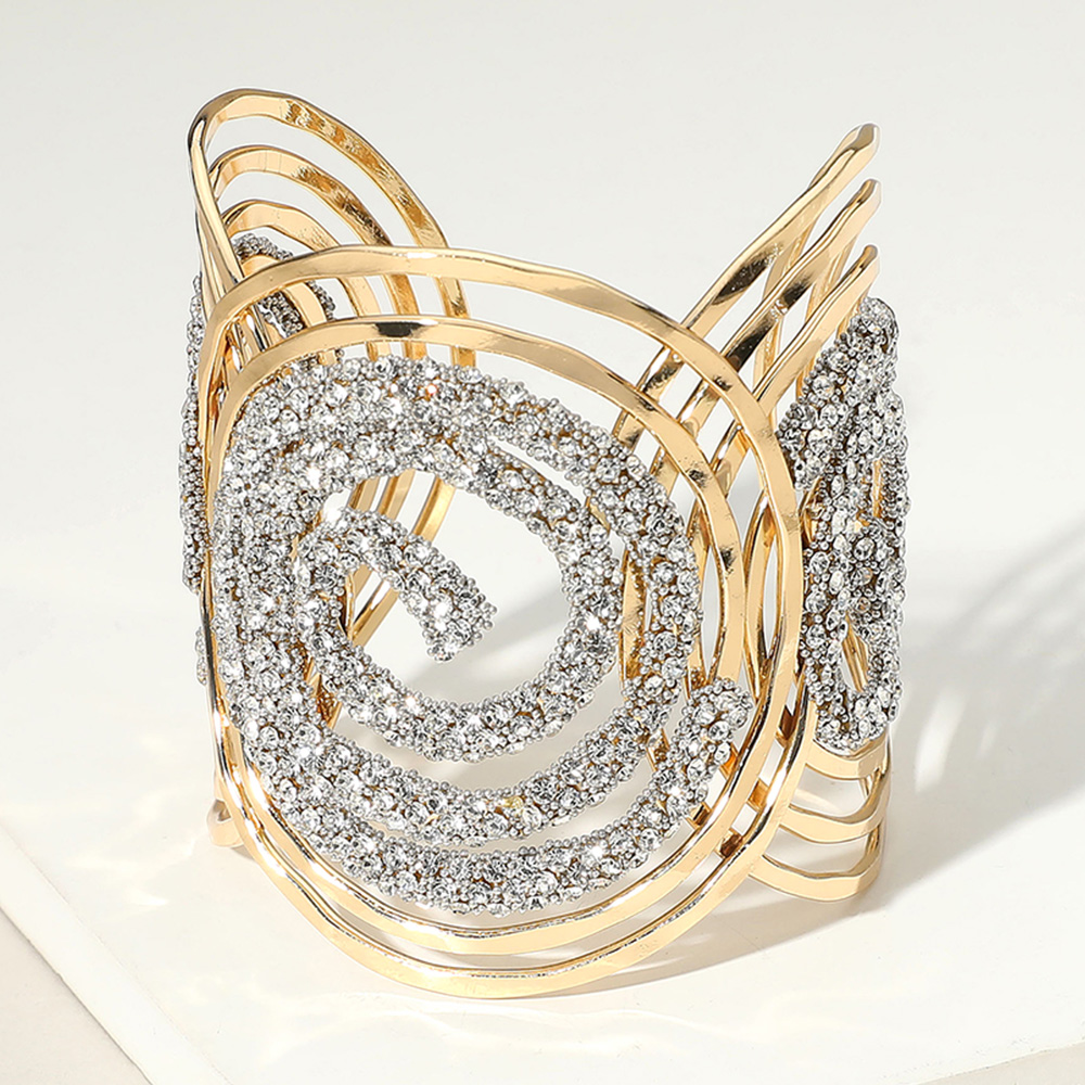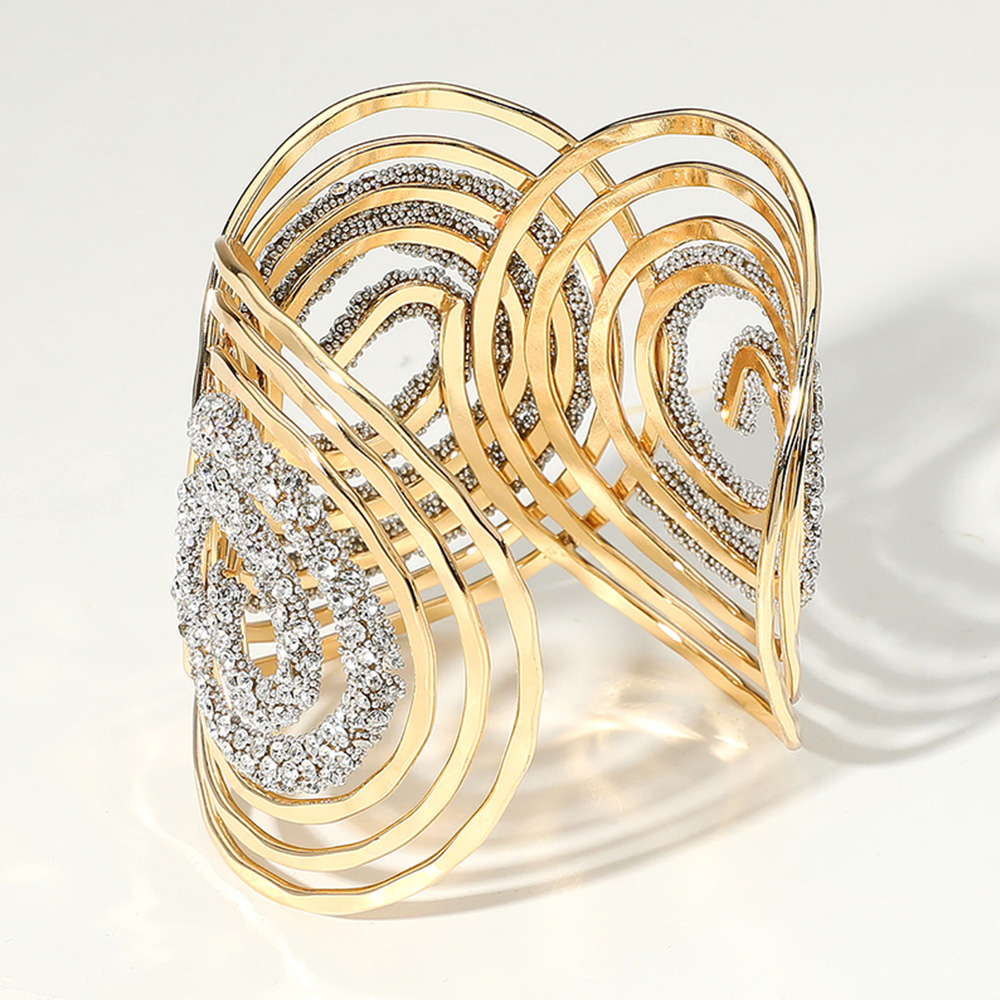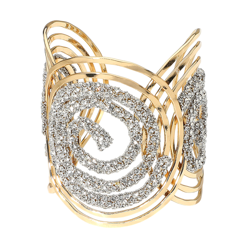 Stone Paved Abstract Spiral Wide Cuff Bracelet