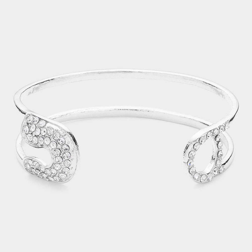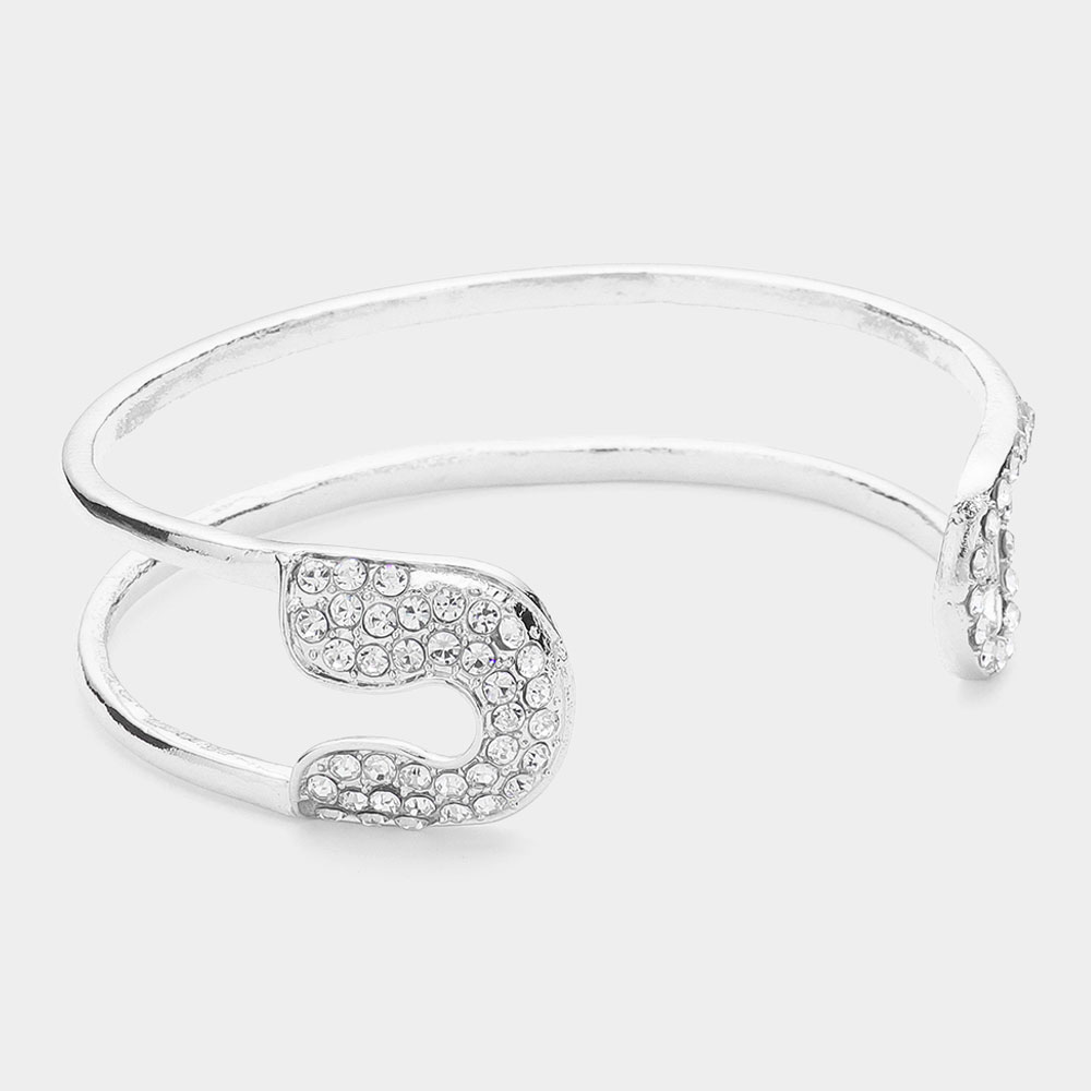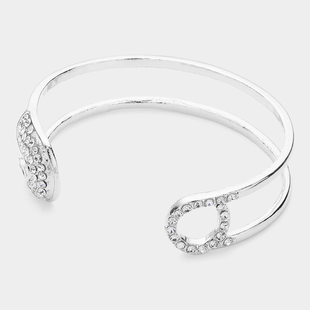 Stone Paved Tip Safety Pin Cuff Bracelet