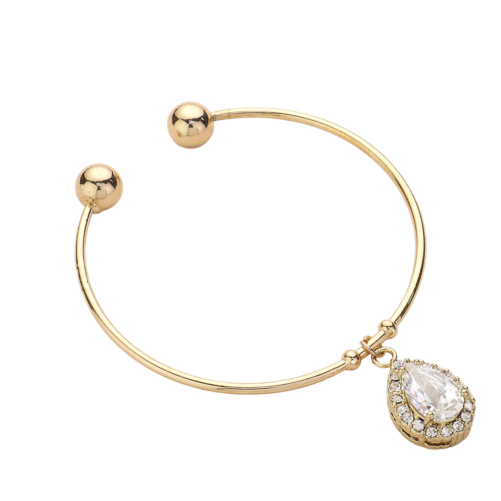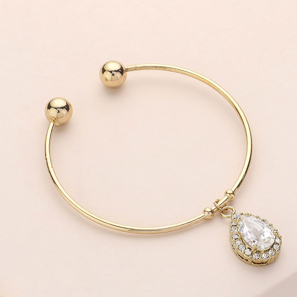 Teardrop Crystal CZ Stone Charm Cuff Bracelet