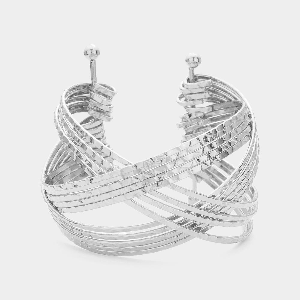 Textured Metal Wire Abstract Crisscross Cuff Bracelet