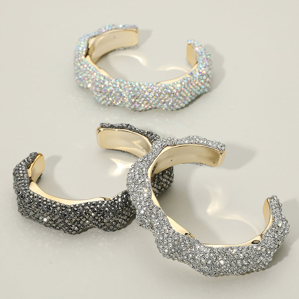 Details • Size : 0.6" H, 2.3" D • Cuff • Make a bold impression with this textured cuff bracelet encrusted with dark crystals. Its edgy silhouette and brilliant sparkle add drama and elegance to any standout outfit or night-out look. • Lead and Nickel Compliant