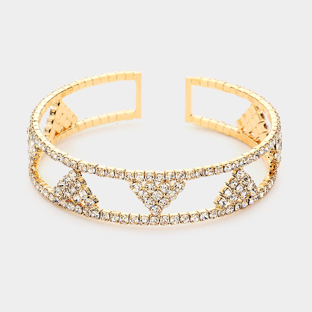 Triangle Rhinestone Pave Accented Cuff Bracelet