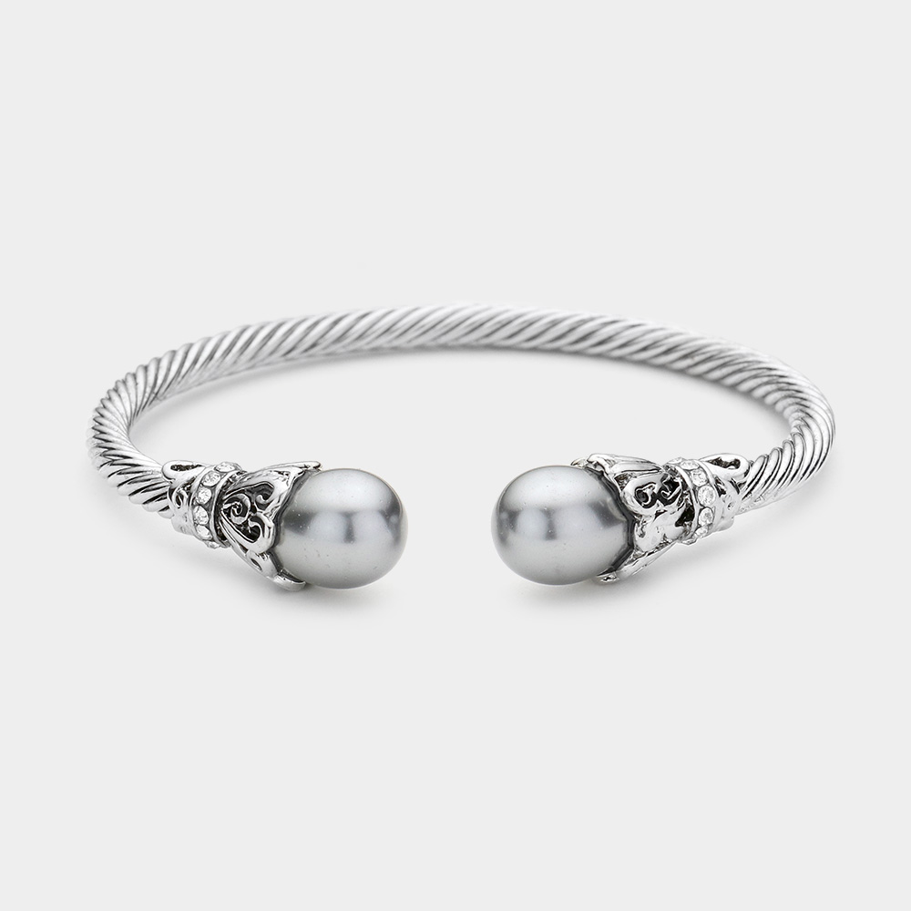 Twisted Metal Pearl Tip Cuff Bracelet
