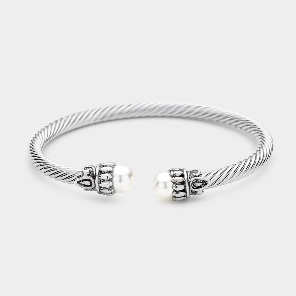 Gold Dipped Cubic Zirconia Pearl Floral Post Earrings