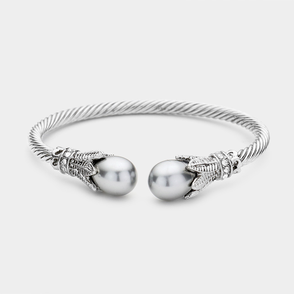 Twisted Metal Pearl Tip Cuff Bracelet