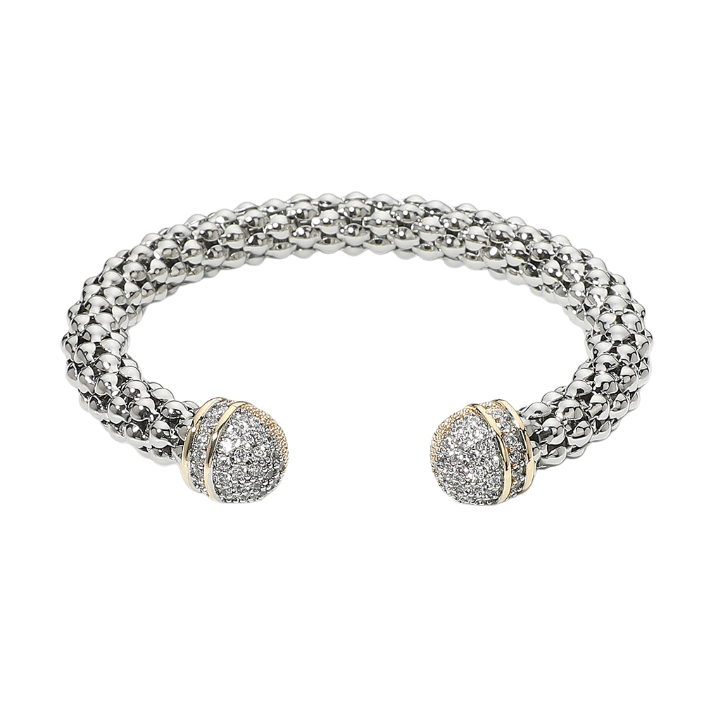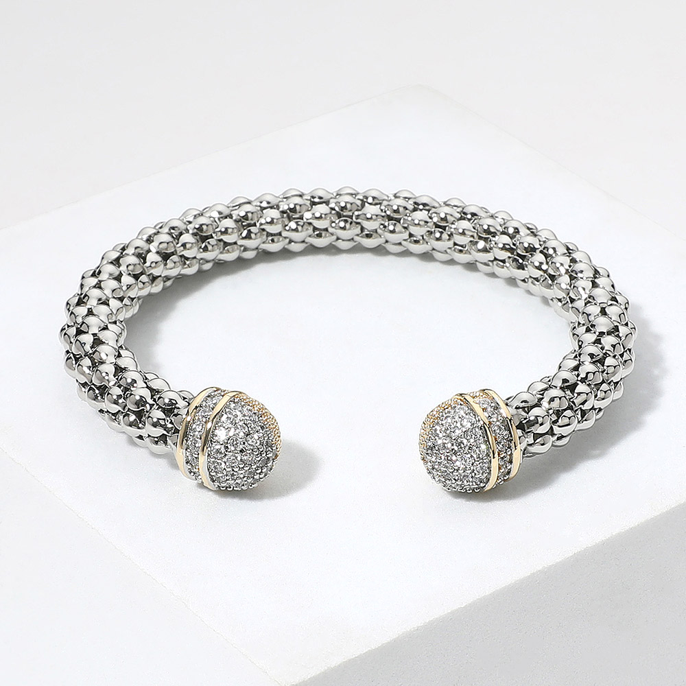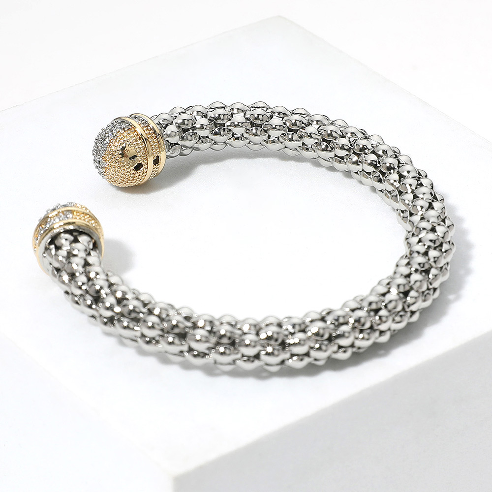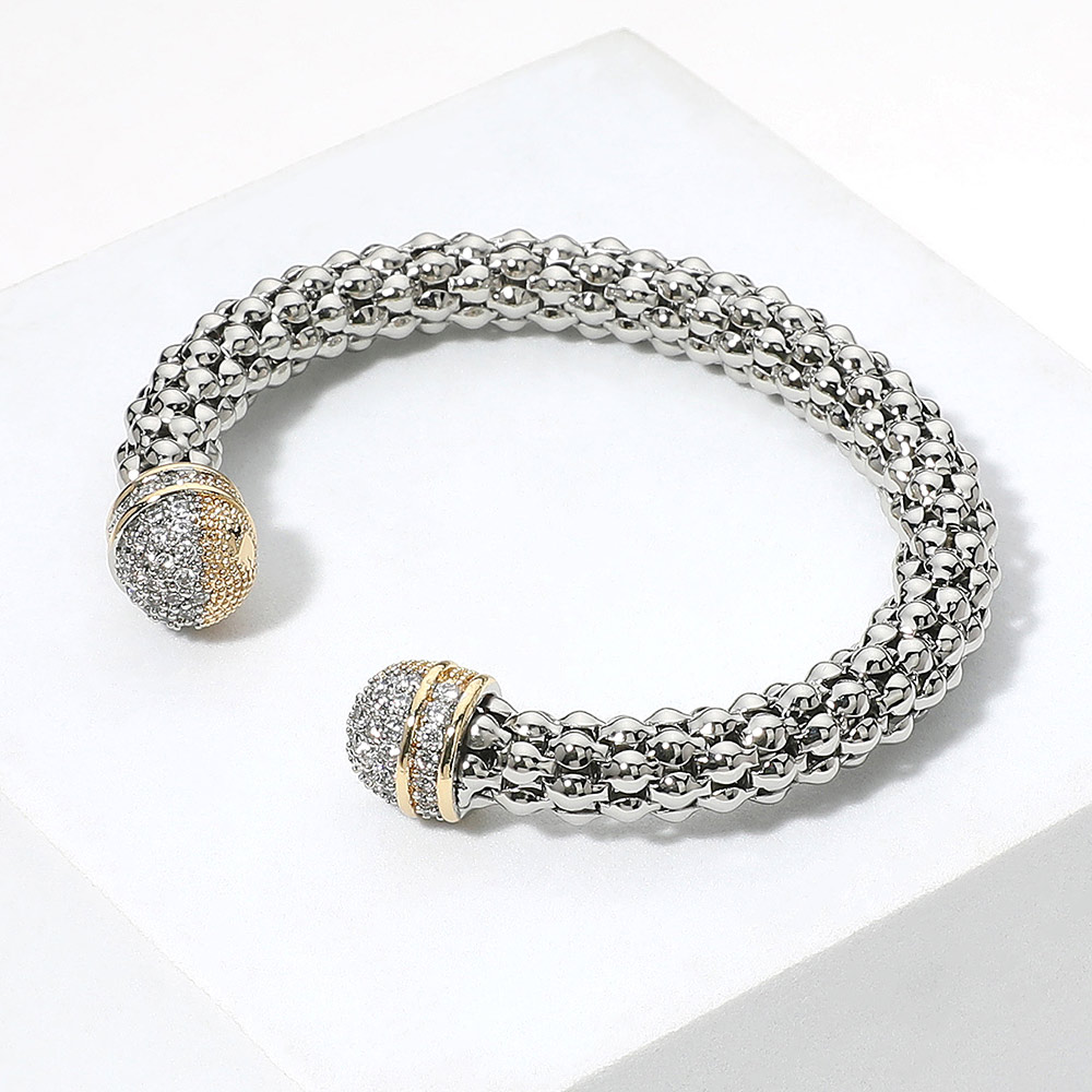 Two Tone Stone Paved Dome Tip Cuff Bracelet