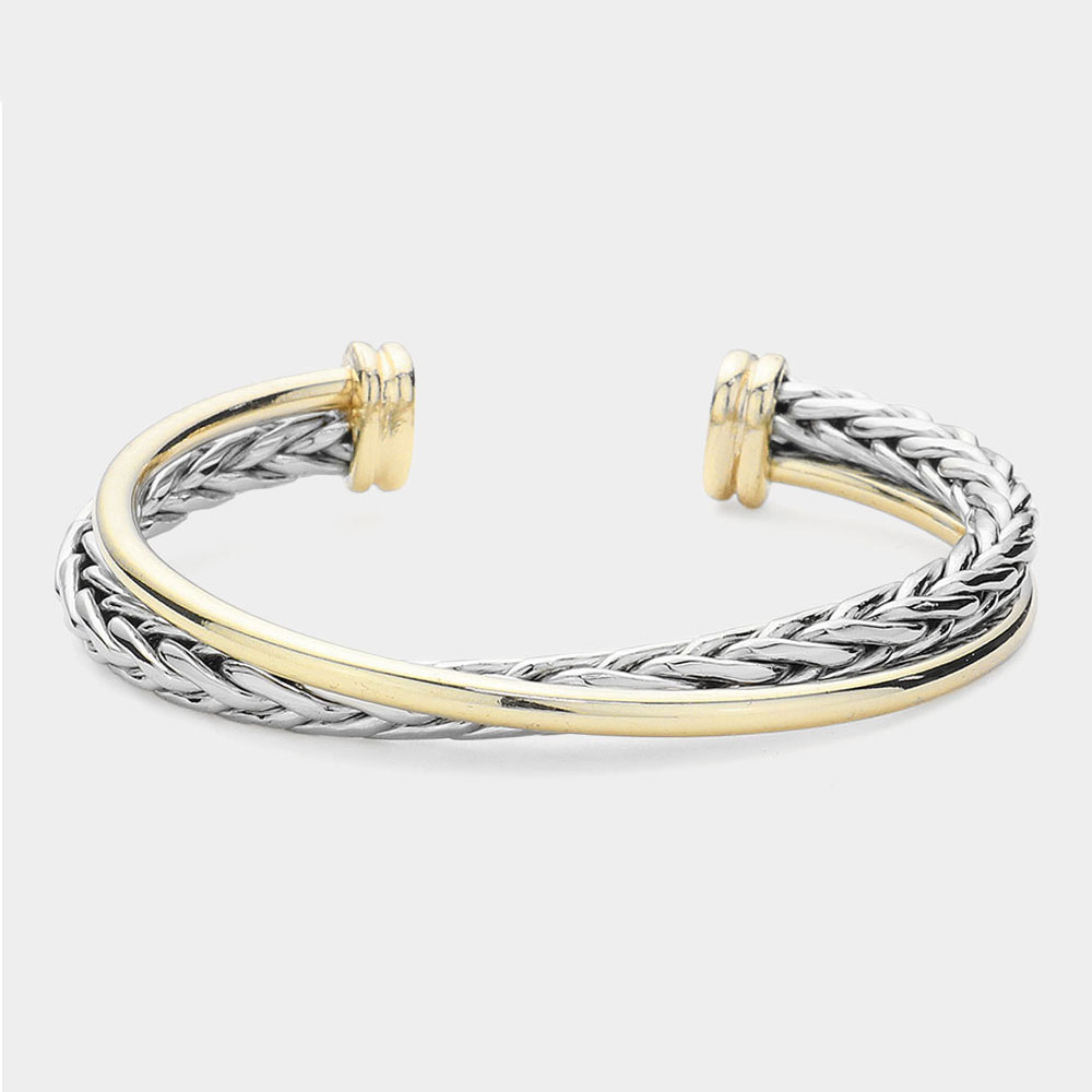 Two Tone Crisscross Accent Stone Bezel Rim Stretch Bracelet