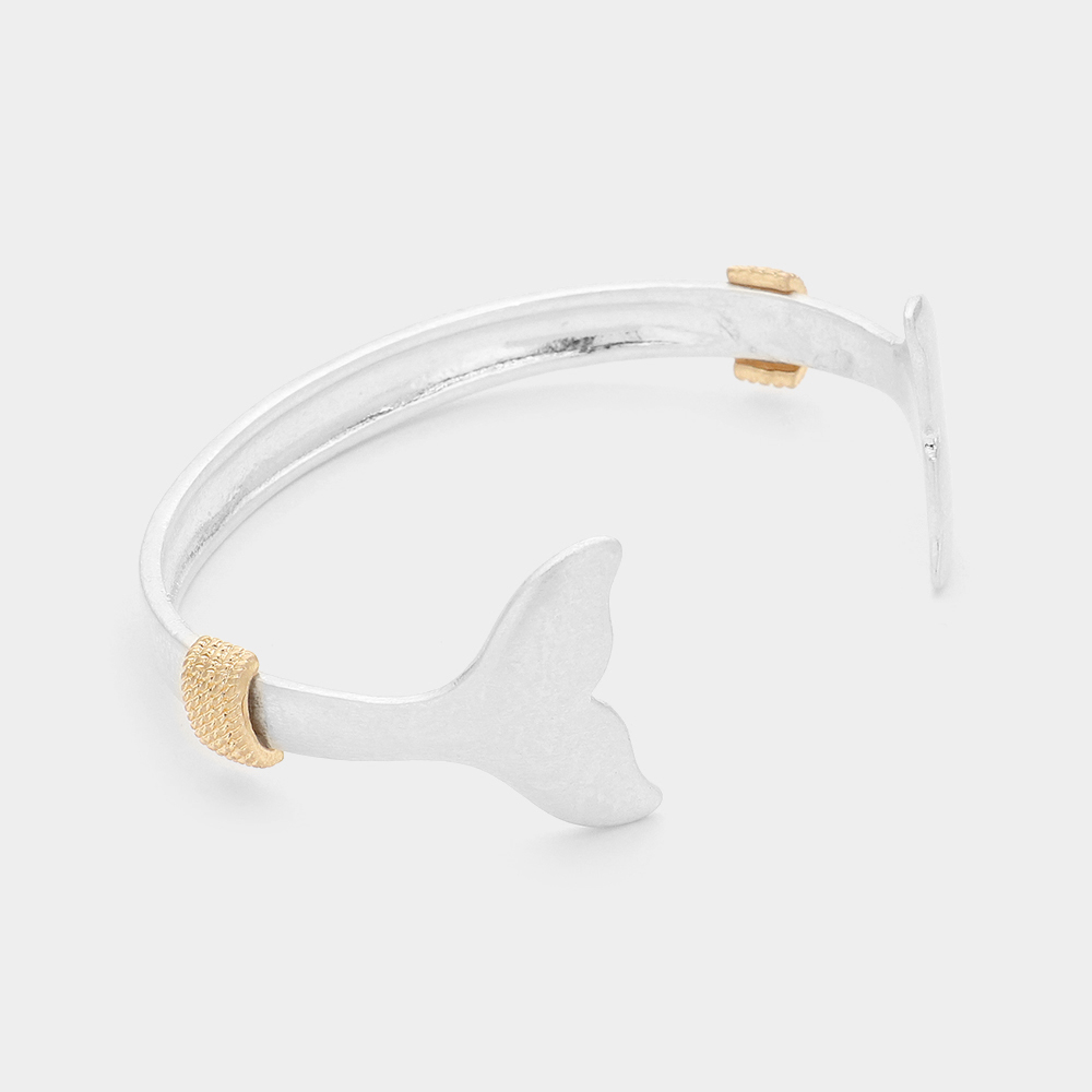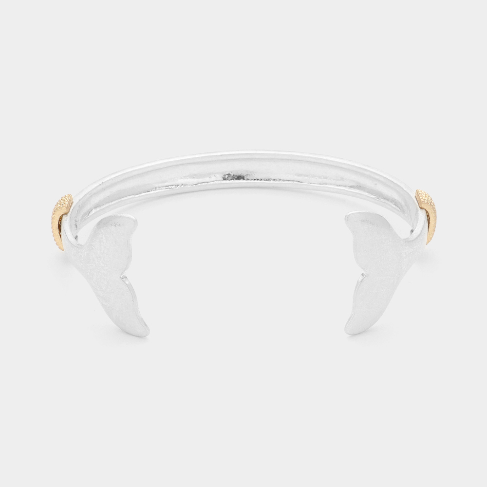 Two Tone Metal Whale Tail Tip Cuff Bracelet