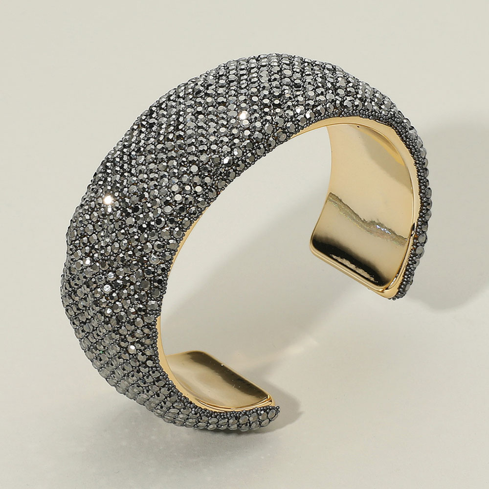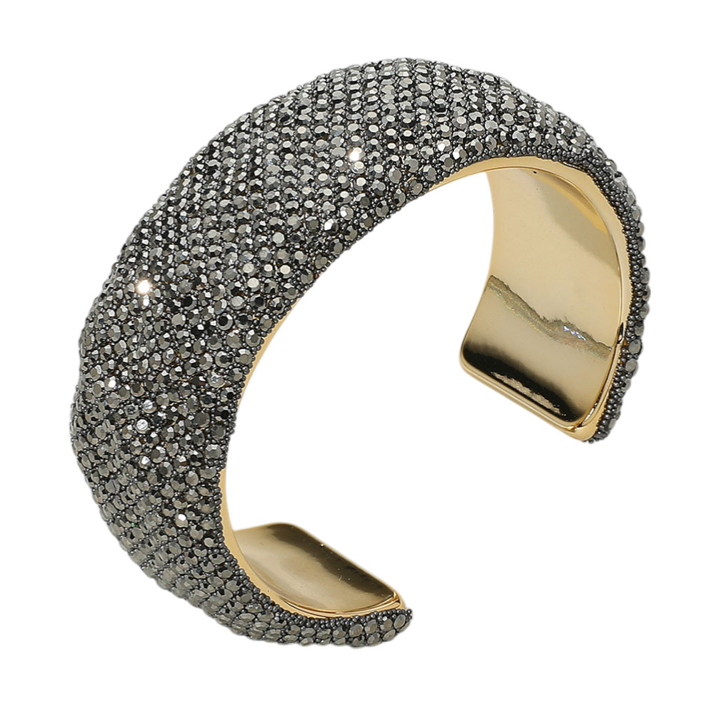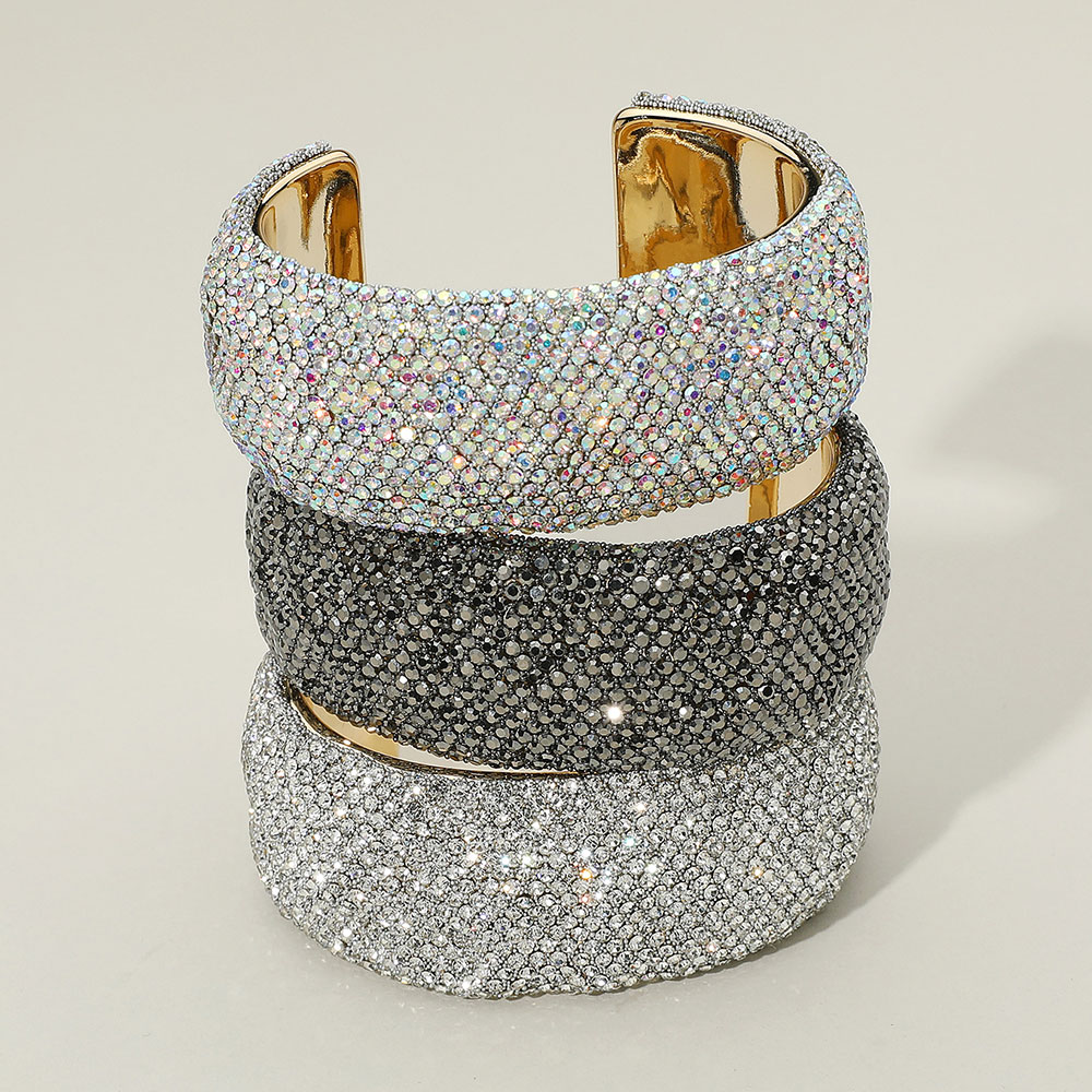 • Make a dazzling impression with this wide cuff bracelet encrusted in shimmering rhinestones. A bold and glamorous statement piece that instantly elevates evening looks or adds sparkle to special occasions.
